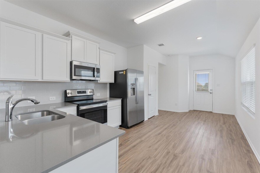 Welcome home! This charming one-story, 3-bedroom, 2-bath house is nestled in the vibrant community of Jarrell, TX. It features an open floor plan with modern quartz countertops, along with the convenience of included appliances such as a refrigerator, washer, and dryer. The home also offers a full sprinkler system and a smart garage door opener for added convenience. The large, private backyard with a covered patio is perfect for both relaxation and entertaining. Located just minutes away from local schools, you're only a 15-minute drive from the Georgetown Costco and nearby shopping, combining small-town charm with modern convenience. Residents of this community enjoy access to an Olympic-size swimming pool, splash parks, playgrounds, scenic trails, and more! Make this home yours today!