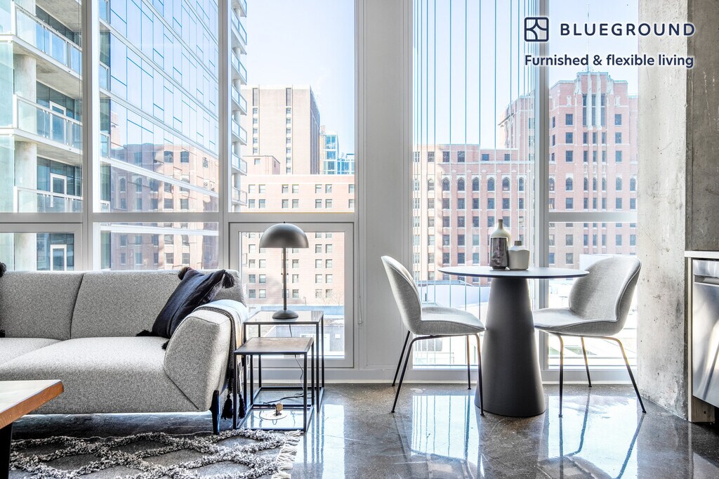 Show up and start living from day one in Chicago with this stylish one bedroom Blueground apartment. You’ll love coming home to this thoughtfully furnished, beautifully designed, and fully equipped Near North home with stunning views over the city. (ID #CHI362) The advertised rate of $2,810/month is the lowest available price, based on a 1 month(s) and 24 day(s) stay with a move-in date of March 1, 2026. If you’re looking for a 1-year stay, the rate is $3,180/month. Rates vary depending on the duration of stay, season, and other parameters. For exact pricing and additional pricing components, please visit our website and enter your desired move-in and move-out dates. The rate is applicable when billed upfront; it can be higher if billed in multiple payments. Brokers are welcome to reach out. Were you looking for an unfurnished lease? Try Blueground instead and upgrade from unfurnished to furnished living: - Furnished at rates comparable to unfurnished - No setup or furniture costs - save thousands - Move-in ready - save time, just bring your suitcase Designed with you in mind Gorgeous furniture, fully equipped kitchen, smart TV, and a premium wireless speaker are just a few of the amenities you’ll find inside this one bedroom apartment. Ideally located in Chicago, you’ll find a lot to love outside as well. When you’re ready to relax, you’ll be happy to discover every Blueground bedroom comes with superior quality mattresses, luxury linens, and cozy towels. We handle everything so you can simply show up and start living. This apartment also offers in-apartment laundry. Sleeping arrangements King Bed, 70.8in/180cm Amenities Building amenities unique to this one bedroom apartment include an on-site: - BBQ Area - Doorman - Dryer - Elevator - Swimming pool - Washing machine - Lounge - Pets allowed Arrival and ongoing support The entire apartment is yours to enjoy! Throughout your stay, you’ll have access to our Client Experience team through the Blueground App. You can schedule additional cleanings, submit maintenance requests, and view our neighborhood recommendations with just a few taps. We’ll share all details upon confirmation of your stay. Other things to note Building amenities may have an extra cost. This Blueground apartment has flexible lease options, allowing you to book it for one month, a year, or more. Pets are welcome, though weight limits and breed restrictions apply and may incur fees. We take great pride in ensuring every photo displayed is shot in our own units with our actual furnishings. That said, we regularly refresh our decor and furniture arrangement, which may differ from what’s pictured. Also note - This apartment's central location means it can be noisy at times [SI]