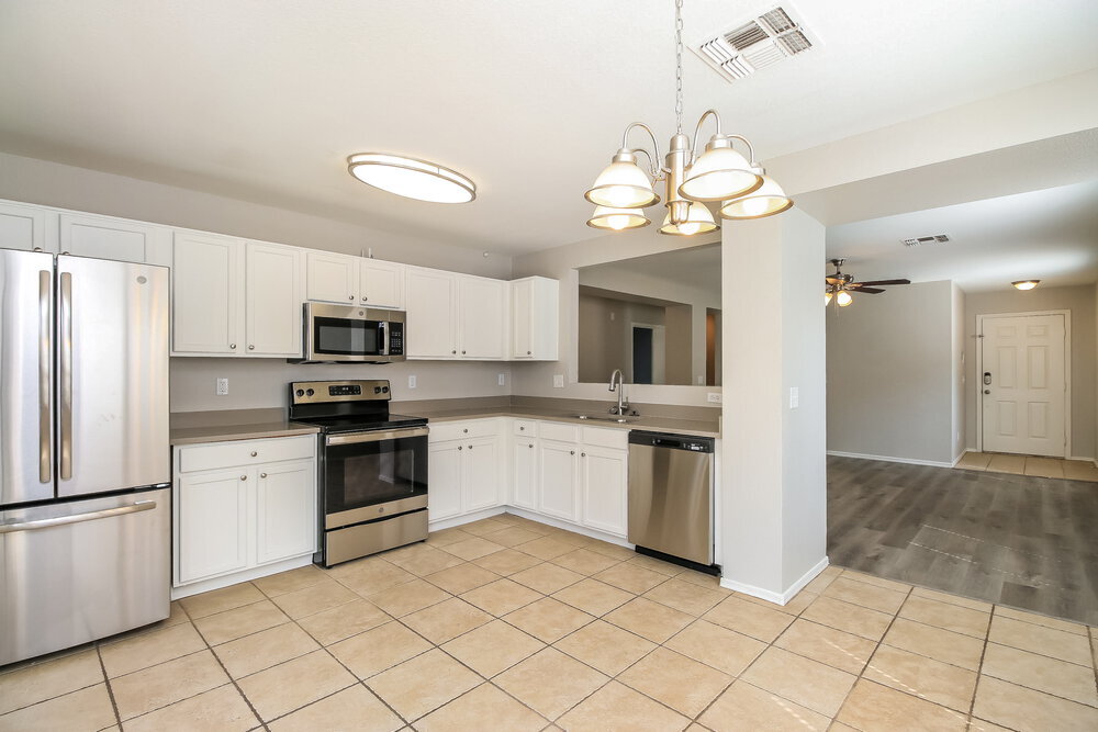 Please note, our homes are available on a first-come, first-serve basis and are not reserved until the holding fee agreement is signed and the holding fee is paid by the primary applicant. This home features Progress Smart Home - Progress Residential's smart home app, which allows you to control the home securely from any of your devices. Learn more at This home is priced to rent and won't be around for long. Apply now, while we make this home ready for you, or call to arrange a meeting with your local Progress Residential leasing specialist today. Apply now and move-in by November 30, 2021 and receive a 17 month lease with no rent increase at month 12. A serene xeriscape surrounds this single-story renovated Chandler rental home with three bedrooms and two bathrooms. The open plan begins in the living room, where vinyl plank flooring and an overhead fan offer comfort while you relax. Notice the eat-in kitchen's stainless-steel appliances, walk-in pantry, and ample counter space, which make cooking as efficient as possible. The dining room's modern chandelier and sliding glass doors to the patio in the fenced backyard provide ample illumination for your meals. Neutral decor, a ceiling fan, and twin windows promote relaxation in the primary bedroom. Choose an outfit from the walk-in closet there, which has built-in shelving to make organization easy. Arrange a tour of this move-in-ready smart home today.