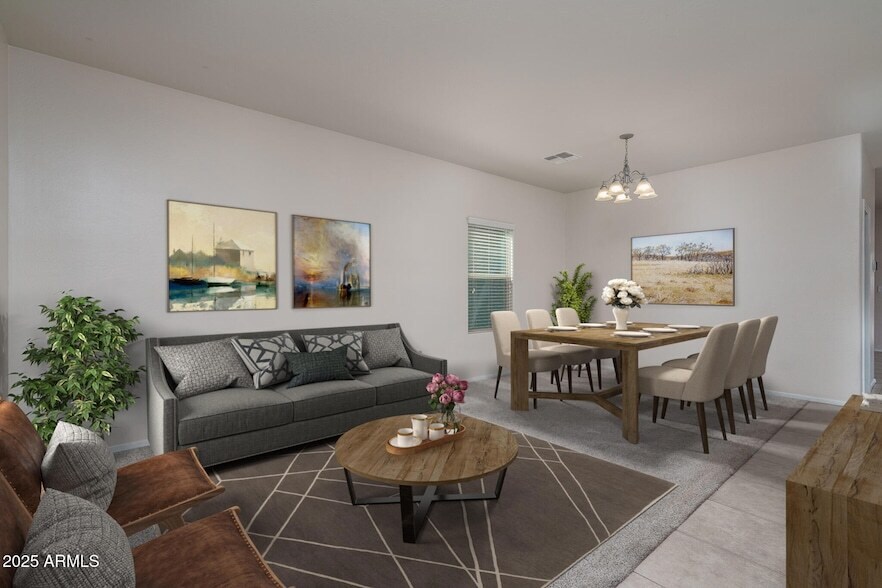 Available now! Located in North Peoria's popular Tierra Del Rio neighborhood, this move-in ready home offers 4 bedrooms and 2.5 baths in 2391 SqFt. The floor plan includes a front living/dining room, separate family room open to the kitchen, and an upstairs loft. The kitchen has recessed lighting, maple cabinets in a cherry finish, granite countertops, stainless appliances including a gas range, a center island, and a large walk-in pantry. Sliding glass doors lead out to the covered patio and a large backyard with easy care desert landscaping and a storage shed. All bedrooms and the laundry room are upstairs. The primary bedroom has a private bath with dual vanities, separate tub and shower, and dual walk-in closets. Secondary bedrooms also have walk-in closets, and the upstairs bath has a dual sink vanity and tub/shower combo. Other features include a front security door, new interior paint throughout, recently cleaned tile/grout, a newer 2023 TRANE HVAC/gas furnace, a tankless gas water heater, 2023 water softener, a 2-car garage with epoxy floors, and leased solar panels providing utility savings.