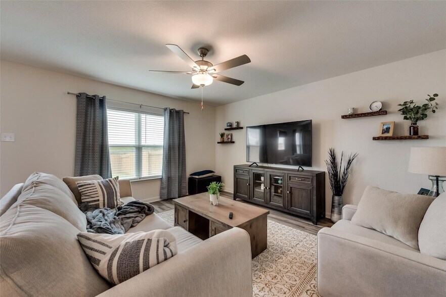 This modern 3-bedroom, 2-bath residence offers a spacious open floor plan, seamlessly connecting the main living areas for functional, easy living. The stylish kitchen boasts stainless steel appliances, granite countertops, and rich dark cabinetry. The other upgrades included in this home are full blinds throughout, washer and dryer and Blink doorbell and security camera. The primary bedroom features an ensuite bath and a walk-in closet, while two additional bedrooms share a full bath. Outside, enjoy the privacy of a fenced backyard with serene greenbelt views and no neighbors behind, you will love capturing the Texas sunsets from your backyard. The home also includes an attached 2-car garage. Conveniently located with easy access to highways I-30 and I-820, making commuting a breeze. Don't miss it, schedule a tour today! Home will be ready to rent in middle to end of February. Seller is open owner finance as well.