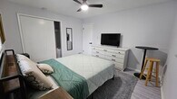 Property Id: 2437042 Spacious Private Room with Large Closet & Smart TV - All-Inclusive The Private Space: Welcome to a newly renovated, premium private room that perfectly balances style and utility. This room is an ideal retreat for those who appreciate extra storage space and a cozy, modern atmosphere. The Sleep Zone: A queen-sized bed with an industrial-style headboard and a signature mint-green comforter. A plush, high-pile grey area rug adds a layer of comfort and warmth to the space. Maximum Storage: This room features a large double-sliding door closet, providing significant space for your wardrobe and personal items, plus a wide white 6-drawer dresser. Work & Dine in Private: Equipped with a dedicated corner workstation for your productivity needs and a personal bistro table with a stool for private dining or coffee. Tech & Convenience: Includes a Smart TV, personal mini-fridge, modern nightstand, and a full-length mirror. Atmosphere: Two large windows with privacy blinds keep the room bright, while a sleek black ceiling fan and modern grey flooring ensure a comfortable, contemporary stay. The Shared Experience (10950 Fernando St.): Your room is fully self-contained for privacy, but you’ll also have full access to the home’s amenities: Gourmet Kitchen: Access to upgraded appliances, a Keurig station, and basic cookware. Professional Maintenance: We provide a cleaning service for common areas, keeping the shared home environment spotless. All-Inclusive: Your rent covers high-speed Wi-Fi, electricity, water, and trash—no hidden fees. Outdoors: Enjoy full use of the large, fenced-in front and back yards.