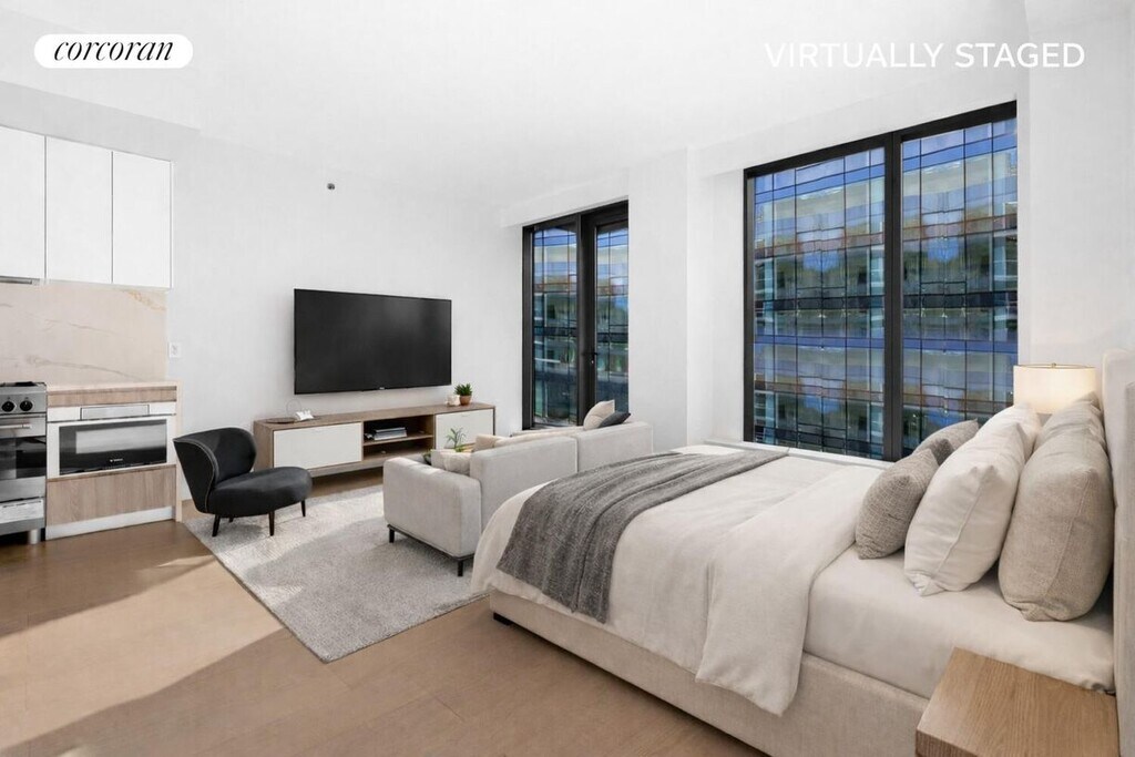 Experience elevated studio living at Vesta, a newly built, park-adjacent residence offering refined design and effortless comfort in the heart of Long Island City. Unit 408A is filled with soft natural light streaming through floor-to-ceiling, triple-paned windows with a northern exposure. Warm white oak floors, high ceilings, and central heating and cooling create a calm, contemporary backdrop for everyday living. Step out on your private balcony overlooking the garden area. The living and sleeping areas flow naturally into a beautifully crafted kitchen, where organic tones meet polished Alpine Mist quartz. Custom Arcadian oak cabinetry blends seamlessly with integrated Bosch and Bertazzoni appliances, and a waterfall peninsula offers a welcoming space. The spa-like bathroom is finished with Florim matte onyx porcelain tile floors with radiant heat, Porcelanosa wall tiles, a custom floating vanity topped with Arctic Snow quartz, mirrored medicine cabinetry with open shelving, a Toto Neorest toilet, and sleek Grohe fixtures-bringing a sense of calm luxury to daily routines.VESTA is a full-service, luxury condominium offering an impressive suite of amenities: full-time door staff, a landscaped garden and outdoor lounge with fire pit and grills, resident lounge, Zoom room, private fitness center, pet spa, playroom, and more. Additional conveniences include package storage, bike and stroller rooms, optional storage, and on-site parking.Surrounded by Trader Joe's, Target, top restaurants, cafes, and breweries, with easy access to the 7, E, M, and G trains, NYC Ferry, and multiple bus lines, this is Long Island City living at its most polished and connected.Application Fee: - $20 credit check fee per applicant