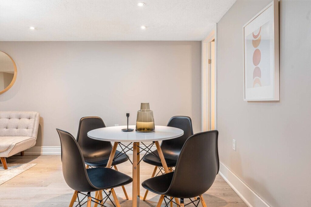 The advertised rate of C$8,902/month is the lowest available price, based on a 30 day(s) stay with a move-in date of May 18, 2026. Rates vary depending on the duration of stay, season, and other parameters. For exact pricing and additional pricing components, please visit our website and enter your desired move-in and move-out dates. The rate is applicable when billed upfront; it can be higher if billed in multiple payments. Feel at home in this professionally furnished and designed home, conveniently located just off Oxford St. This home features five bedrooms and is minutes away from Bellwood Plaza. Please do not use the wooden steps, as they're currently damaged. This home features two fully stocked kitchens (large on the main floor, small in the basement) and two living rooms equipped with smart TVs (Netflix, Prime, Crave, Disney+, and more). Super high-speed Wi-Fi and a modern bathroom oasis on each floor, plus a spacious backyard, ensure a comfortable and relaxing stay. Guests have access to a private driveway which can accommodate two regular-size vehicles. Guests also have full, private access to the driveway, backyard patio, and newly installed fire pit. Guests reserved for 28 days or more are responsible for their own consumables after the initial reserve provided is used. Located on a residential street just off Oxford Street, this home is a few minutes away from Bellwood Plaza, where you'll find everything you need from necessities to entertainment. Groceries, LCBO, restaurants, and eateries are all within walking distance. A short 5-7 minute drive to Western University, Fanshawe College, and Downtown London makes this location a gem for anyone. Guests have easy access to city transit or can get anywhere by car. Quiet hours start at 10 pm until 8 am the following morning. Smoking is not allowed inside the property, and evidence of indoor smoking will result in a $1000.00 fine. Pets are welcome, but they are not allowed on fabric couches/chairs and beds; any evidence or damages will require additional cleaning and will be charged back to your reservation. No parties or undeclared social gatherings are allowed, and guests will be charged $500.00 for breaking this rule. A surcharge of $100.00 per undeclared guest per night will be applied for unapproved guests. Lock all windows and doors if you are not home. Security cameras monitoring the entrance of the home are in place for the safety and security of the home and our guests; do not touch/tamper with these cameras, as any form of tampering will result in immediate cancellation of your reservation. Noise monitoring is in place, and any evidence of tampering with the noise device will result in immediate cancellation of your reservation. There are additional fees associated with pets: $25/day for 1-5 days, $200 for 6-28 days, and $300 for 29+ days. If any of the listing rules are abused, you will be subject to additional charges, and your reservation may be terminated. Since our cleaners are always on a tight schedule to get the units ready for the next guest, there is a late check-out penalty of $100/hr after 11:00 a.m. in case of a delayed checkout. Please be advised that the door may not lock automatically, so you will have to make sure it is locked before you leave the house. [SI]