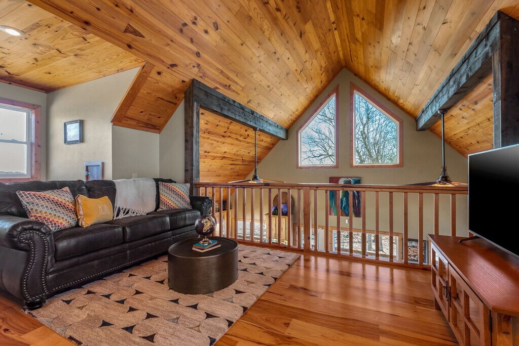 Escape to this private hilltop cabin overlooking the Ozark Mountains. Watch sunsets from the wraparound deck, roast s’mores around the fire pit, or relax in the light-filled great room with vaulted ceilings and rustic charm. Only minutes from the Buffalo River and downtown Jasper, it’s the perfect retreat for families, friends, or outdoor adventurers. Nestled on a quiet ridge, Jasper Hideaway blends rustic cabin vibes with modern comforts. Floor-to-ceiling windows frame panoramic mountain views, while wood floors and unique décor add character. Three bedrooms accommodate up to 10 guests comfortably, making this home ideal for family gatherings and small groups. The expansive wraparound deck and covered porch overlook the Ozark mountains and sunset vistas. Enjoy outdoor fun with a fire pit and space for stargazing. The fully equipped kitchen includes a full-size fridge, oven, microwave, dishwasher, coffee maker, and stocked cookware. Sleeping arrangements include Bedroom 1 with a queen bed, Bedroom 2 with two double beds, and Bedroom 3 with two queen beds. There are two full bathrooms with shower/tub combos and a half bath, complete with plush towels and starter toiletries. Parking is available in the garage and driveway with additional space off the gravel driveway. The cabin sits on multiple acres, providing ample space for relaxation and exploration. Our home sits just a short drive from downtown Jasper and the Buffalo National River access. Stock up on groceries at Harp’s in Jasper, then explore nearby hiking trails, waterfalls, and iconic float trips. Because of the rural setting, a car is essential; roads are gravel but well maintained, and there is plenty of on-site parking. A car is necessary to explore the area as there are no public transit options. Gravel roads are well maintained but may be rough after heavy rain or snow. Guests have exclusive use of the entire cabin, deck, and outdoor fire pit area. Self check-in is available with a keypad lock, and the code and detailed arrival instructions are sent 24 hours before arrival. High-speed Wi-Fi is provided, although limited cell service encourages a true getaway. Seasonal considerations include winter weather potentially impacting road conditions, so a four-wheel drive is recommended during ice or snow. A washer and dryer are available for laundry. Smoke and CO detectors are installed, and a fire extinguisher is located under the kitchen sink. We’re available via the platform app or phone for any questions before or during your stay. You’ll enjoy self-check-in with a keypad, and we’re happy to provide local recommendations or assistance if needed. Otherwise, we respect your privacy and give you space to relax. [SI]