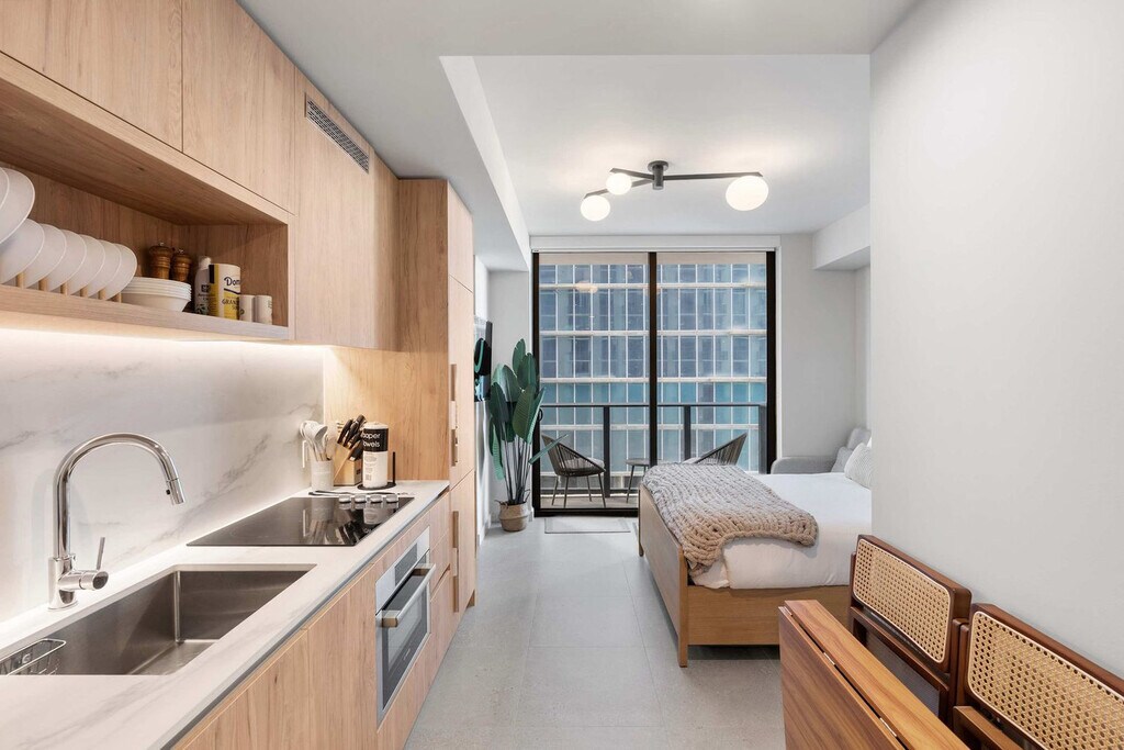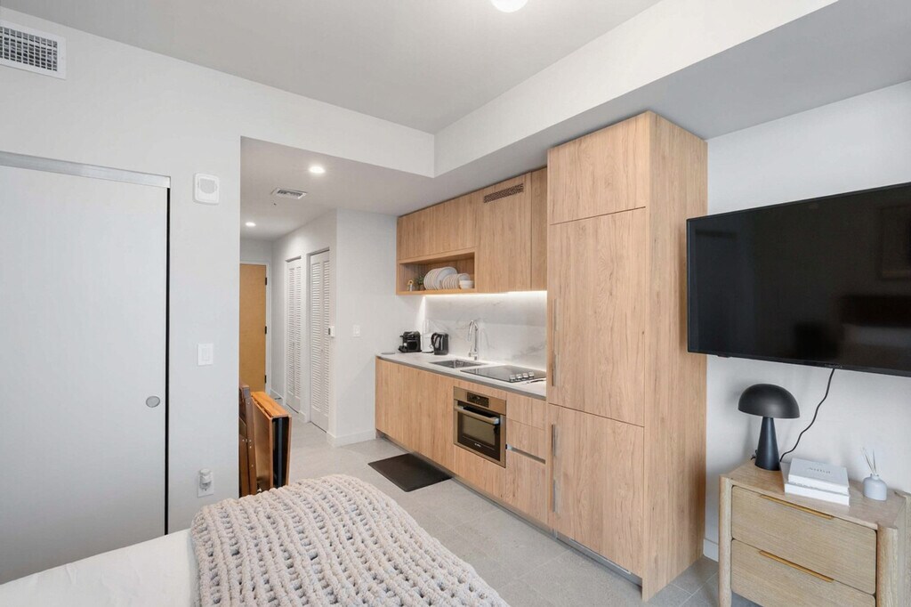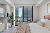 The advertised rate of $3,400/month is the lowest available price, based on a 30 day(s) stay with a move-in date of August 3, 2026. Rates vary depending on the duration of stay, season, and other parameters. For exact pricing and additional pricing components, please visit our website and enter your desired move-in and move-out dates. The rate is applicable when billed upfront; it can be higher if billed in multiple payments. Experience Miami from this stylish studio in one of Downtown’s most vibrant districts. Designed for modern living, this space is perfect for both relaxation and productivity. Feel at home in this studio. This studio offers a queen-size bed with linens, a modern seating area, and an elegant bathroom with a spa-inspired design. The fully equipped kitchenette features sleek appliances, and there is a work and dining space. Luxury details and finishes are found throughout the studio. One free parking spot is available in a parking lot conveniently located just 0.2 miles from the building. All the best of Miami is at your fingertips! Bayside Marketplace offers waterfront promenades, live music, shopping, and local cuisine. The Kaseya Center, home of the Miami Heat and a venue for major concerts and events, is just steps from the building. Skyviews Miami offers spectacular views, and Bayfront Park is an urban oasis by the bay. The Pérez Art Museum (PAMM), Frost Museum of Science, and Miami Riverwalk are also nearby. Brickell & Mary Brickell Village offer top restaurants, elegant bars, and vibrant nightlife just minutes away. The Metromover provides free, fast, and convenient transportation around downtown Miami. Metrorail connects Downtown with North and South Miami, and Brightline/MiamiCentral offers fast train service to Fort Lauderdale, West Palm Beach, and Orlando. Miami International Airport (MIA) is accessible in 15–25 minutes. Because the unit is located in the heart of Miami Worldcenter, you may hear occasional construction noise during the day. Smoking is strictly prohibited on the entire property, including inside the unit and on the balcony. Violating this rule may result in a $300 fine. Reservations must be made by a person who is 21 years old, and the reservation holder’s presence is required throughout the entire stay. Includes a business-friendly set-up for remote work. [SI]