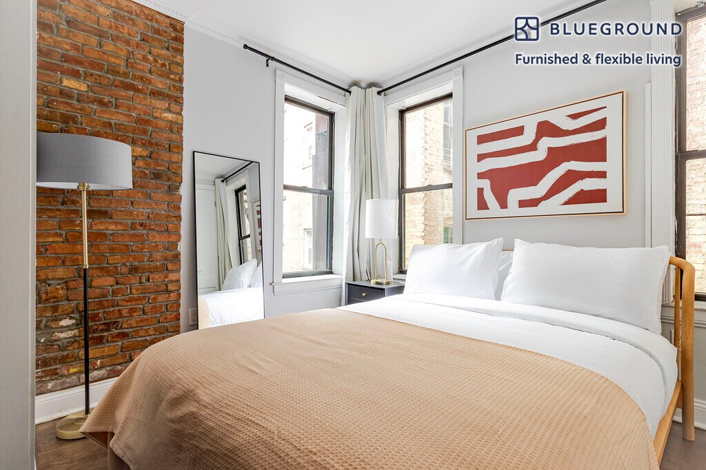 Feel at home wherever you choose to live with Blueground. You’ll love this charming West Village furnished two bedroom apartment with its modern decor, fully equipped kitchen, and cheery living room. Ideally located, you’re close to all the best that New York has to offer! (ID #NYC2122) The advertised rate of $9,430/month is the lowest available price, based on a 11 month(s) and 29 day(s) stay with a move-in date of June 9, 2026. Rates vary depending on the duration of stay, season, and other parameters. For exact pricing and additional pricing components, please visit our website and enter your desired move-in and move-out dates. The rate is applicable when billed upfront; it can be higher if billed in multiple payments. Brokers are welcome to reach out. Were you looking for an unfurnished lease? Try Blueground instead and upgrade from unfurnished to furnished living: - Furnished at rates comparable to unfurnished - No setup or furniture costs - save thousands - Move-in ready - save time, just bring your suitcase Designed with you in mind Thoughtfully designed with bespoke finishes, modern furnishings, and a fully equipped kitchen, you’ll enjoy that “I’m home” feeling with this Blueground apartment. Whether you’re lounging in your cheery living room streaming the latest and greatest entertainment on the smart TV or premium wireless speaker, or getting some well-earned rest on the superior quality mattress with luxury linens, you’ll fall in love with everything this West Village apartment has to offer. This apartment also offers in-apartment laundry. Sleeping arrangements Queen Bed, 63in/160cm Queen Bed, 63in/160cm Amenities Building amenities unique to this two bedroom apartment include an on-site: - Dryer - Washing machine - Pets allowed Arrival and ongoing support The entire apartment is yours to enjoy! Throughout your stay, you’ll have access to our Client Experience team through the Blueground App. You can schedule additional cleanings, submit maintenance requests, and view our neighborhood recommendations with just a few taps. We’ll share all details upon confirmation of your stay. Ideally Located This furnished rental is located in the West Village. Cute storefronts and some cobblestone streets give the charming neighborhood the feel of a quaint small town. Populated with shoppers, diners and art lovers. The historically artistic area has numerous piano bars, cabarets, and theaters to discover. Both Times Square and Wall Street are just 15 minutes away by subway. Other things to note This Blueground apartment has flexible lease options, allowing you to book it for one month, a year, or more. Pets are welcome, though weight limits and breed restrictions apply and may incur fees. Please keep in mind that this is a walk up building. Brokes CYOF. We take great pride in ensuring every photo displayed is shot in our own units with our actual furnishings. That said, we regularly refresh our decor and furniture arrangement, which may differ from what’s pictured. [SI]