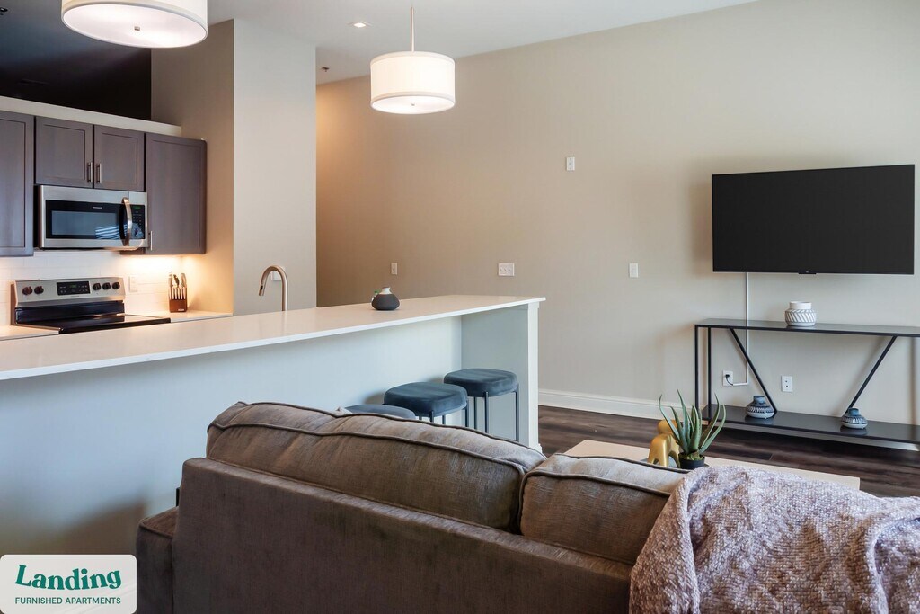 Landing offers flexible lease terms from weeks to months. Please always visit our website or contact us for the latest pricing & availability. Stay longer, save more: 6-Month Minimum base rent: starts at $2406/mo 12-Month Minimum base rent: starts at $2381/mo Landing offers flexible leases across a network of over 35,000 fully-furnished apartments throughout 375+ cities so you can rent on your terms, practically anywhere, and avoid the hassle of paying deposits or application fees. Visit to learn about all the benefits of a Landing membership, see our competitive up-to-date pricing, explore available apartments, take virtual tours, and make reservations online without jumping through traditional rental hoops. Landing's apartments at Flats on Archer are designed for comfortable, easy living, with the ability to stay as long as you like. Experience living with Landing Every apartment is outfitted with all the modern essentials including: custom-designed furnishings, a fully-equipped kitchen with deluxe stainless steel appliances, a gourmet coffee maker, premium linens, Smart TVs, and incredibly fast, reliable internet for working from home. When you live with Landing, you'll enjoy a hassle-free experience with the added benefit of 24/7 access to our dedicated member experience team. Some of the nitty-gritty: a background check and proof of income are required; we're completely smoke-free; bundled utility packages and pricing vary based on length of stay; pet-friendly options available; listed price reflects a 12-month minimum stay.