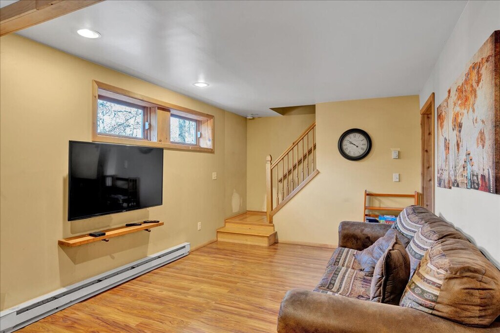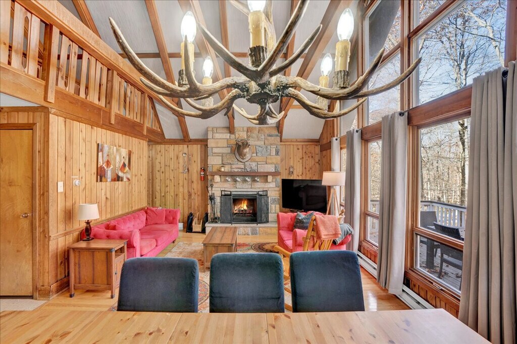 Discover the best of the Poconos with ease from this centrally located home in Pocono Lake. Spend your days exploring the trails in Big Pocono State Park, shopping at the Pocono Premium Outlets, or making a splash at Kalahari Indoor Waterpark. Return to the vacation rental for a backyard barbecue and a late-night dip in the private hot tub. This home features a first-floor queen bedroom with a fireplace, a second-floor standard bedroom with a double full bunk bed, and a third-floor loft with a queen bed and two twin beds. Perfect for relaxation and adventure, this home has everything you need to get away and intertwine with nature. The fully equipped kitchen is a culinary haven, allowing you to whip up delicious meals or enjoy a leisurely breakfast at the stylish dining area. Step inside and discover a world of relaxation and entertainment in the sunlit chalet-style living spaces, tastefully decorated to create an inviting atmosphere. The entertainment options are endless with a dedicated game room, equipped with everything from board games to billiards. For longer stays, freshen up your items in the utility room, which includes a washer and dryer. The driveway fits five vehicles with a $35 registration fee and no street parking is allowed. You will receive eight wrist bracelets for community events and amenities access, with additional bracelets available for a fee. Located in Locust Lake Village, the home is a convenient drive to many popular locations, including a 15-minute drive to Pocono Raceway, 19 minutes to Jack Frost Ski and National Golf Club, 22 minutes to Kalahari Indoor Waterpark, and 25 minutes to Mount Airy Casino Resort. The area offers a variety of amenities such as lakes, beaches, a ski hill, playgrounds, and courts for tennis, basketball, and volleyball. Quiet hours are from 11:00 PM to 7:00 AM and smoking is not allowed. Registration with Locust Lake Village is mandatory, and failure to complete the form may delay or deny access to the property without a refund. Each car tag must be displayed as proof of registration within the community and allows trash disposal at the compactor. The home offers super fast Wi-Fi at 700 Mbps, central heating, and window A/C units, ensuring a comfortable work-from-home experience.