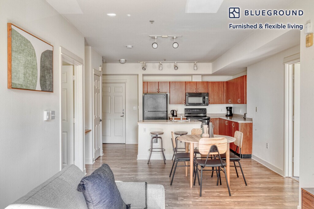 Show up and start living from day one in Bellevue with this stylish two bedroom Blueground apartment. You’ll love coming home to this thoughtfully furnished, beautifully designed, and fully equipped Northwest Bellevue home with stunning views over the city. (ID #SEA427) The advertised rate of $4,510/month is the lowest available price, based on a 1 month(s) and 15 day(s) stay with a move-in date of April 16, 2026. If you’re looking for a 1-year stay, the rate is $4,490/month. Rates vary depending on the duration of stay, season, and other parameters. For exact pricing and additional pricing components, please visit our website and enter your desired move-in and move-out dates. The rate is applicable when billed upfront; it can be higher if billed in multiple payments. Brokers are welcome to reach out. Were you looking for an unfurnished lease? Try Blueground instead and upgrade from unfurnished to furnished living: - Furnished at rates comparable to unfurnished - No setup or furniture costs - save thousands - Move-in ready - save time, just bring your suitcase Designed with you in mind Thoughtfully designed with bespoke finishes, modern furnishings, and a fully equipped kitchen, you’ll enjoy that “I’m home” feeling with this Blueground apartment. Whether you’re lounging in your bright living room streaming the latest and greatest entertainment on the smart TV or premium wireless speaker, or getting some well-earned rest on the superior quality mattress with fully stocked linens, you’ll fall in love with everything this Northwest Bellevue apartment has to offer. This apartment also offers in-apartment laundry. Sleeping arrangements King Bed, 70.8in/180cm Queen Bed, 63in/160cm Amenities Building amenities unique to this two bedroom apartment include an on-site: - Dryer - Elevator - Washing machine - Parking - Pets allowed Arrival and ongoing support The entire apartment is yours to enjoy! Throughout your stay, you’ll have access to our Client Experience team through the Blueground App. You can schedule additional cleanings, submit maintenance requests, and view our neighborhood recommendations with just a few taps. We’ll share all details upon confirmation of your stay. Other things to note This Blueground apartment has flexible lease options, allowing you to book it for one month, a year, or more. Pets are welcome, though weight limits and breed restrictions apply and may incur fees. Parking is offered based on availability and is subject to a fee. We take great pride in ensuring every photo displayed is shot in our own units with our actual furnishings. That said, we regularly refresh our decor and furniture arrangement, which may differ from what’s pictured. [SI]