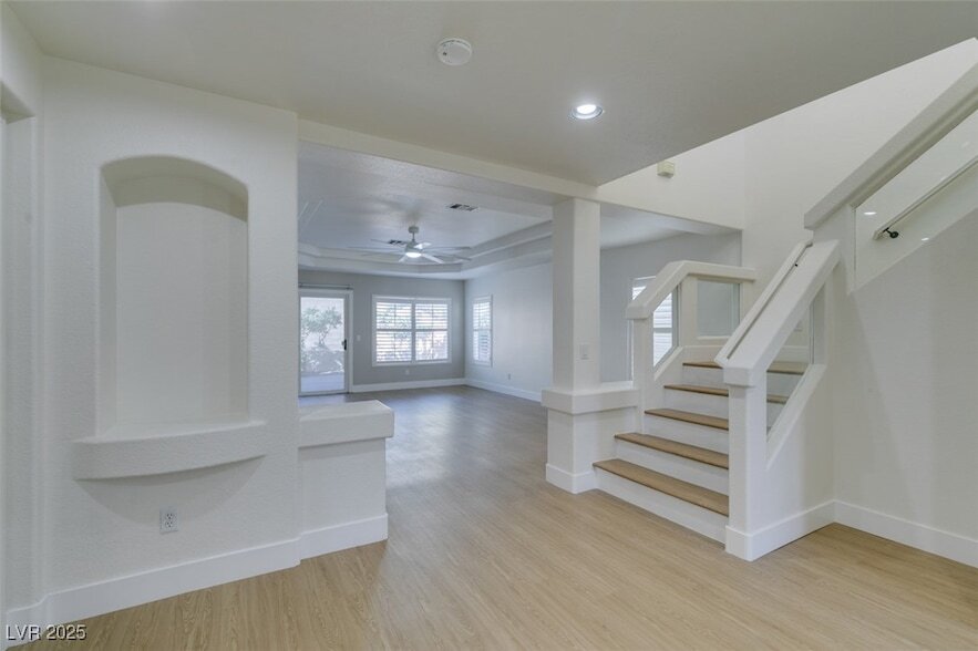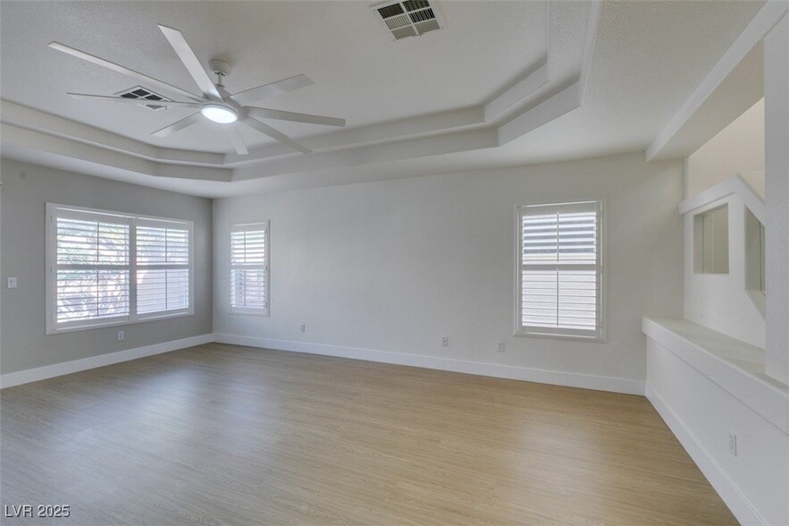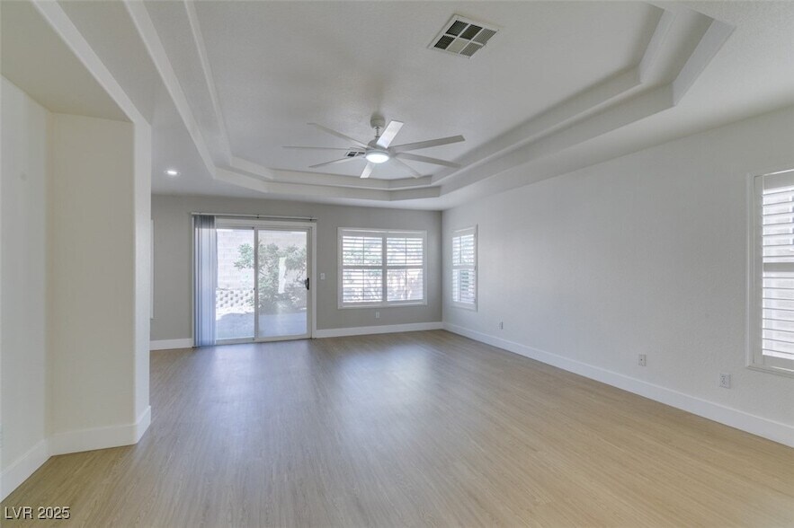 Advertised price is total maximum periodic rent. Dual primary bedrooms- one up one down. Closet system. Freshly painted- stainless steel appliances in kitchen with a center burner on stove and quartz counters. Shutters throughout, laminate flooring, in a guard gated community with playground, tennis courts, and trails.