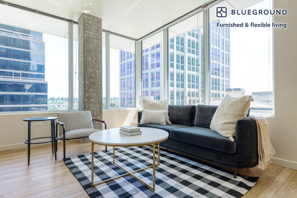 Feel at home wherever you choose to live with Blueground. You’ll love this charming Northwest Bellevue furnished two bedroom apartment with its modern decor, fully equipped kitchen, and spacious living room with great views. Ideally located, you’re close to all the best that Bellevue has to offer! (ID #SEA122) The advertised rate of $2,490/month is the lowest available price, based on a 1 month(s) and 27 day(s) stay with a move-in date of November 20, 2025. If you’re looking for a 1-year stay, the rate is $4,320/month. Rates vary depending on the duration of stay, season, and other parameters. For exact pricing and additional pricing components, please visit our website and enter your desired move-in and move-out dates. The rate is applicable when billed upfront; it can be higher if billed in multiple payments. Brokers are welcome to reach out. Were you looking for an unfurnished lease? Try Blueground instead and upgrade from unfurnished to furnished living: - Furnished at rates comparable to unfurnished - No setup or furniture costs - save thousands - Move-in ready - save time, just bring your suitcase Designed with you in mind Thoughtfully designed with bespoke finishes, modern furnishings, and a fully equipped kitchen, you’ll enjoy that “I’m home” feeling with this Blueground apartment. Whether you’re lounging in your pretty living room streaming the latest and greatest entertainment on the smart TV or premium wireless speaker, or getting some well-earned rest on the superior quality mattress with luxury linens, you’ll fall in love with everything this Northwest Bellevue apartment has to offer. This apartment also offers in-apartment laundry. Sleeping arrangements King Bed, 70.8in/180cm Queen Bed, 63in/160cm Amenities Building amenities unique to this two bedroom apartment include an on-site: - Doorman - Dryer - Elevator - Washing machine - Lounge - Parking - Pets allowed - Rooftop BBQ Arrival and ongoing support The entire apartment is yours to enjoy! Throughout your stay, you’ll have access to our Client Experience team through the Blueground App. You can schedule additional cleanings, submit maintenance requests, and view our neighborhood recommendations with just a few taps. We’ll share all details upon confirmation of your stay. Other things to note Building amenities may have an extra cost. This Blueground apartment has flexible lease options, allowing you to book it for one month, a year, or more. Pets are welcome, though weight limits and breed restrictions apply and may incur fees. Parking is offered based on availability and is subject to a fee. We take great pride in ensuring every photo displayed is shot in our own units with our actual furnishings. That said, we regularly refresh our decor and furniture arrangement, which may differ from what’s pictured.