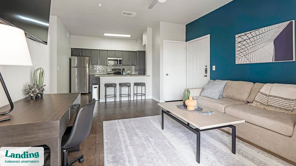 Landing offers flexible lease terms from weeks to months. Please always visit our website or contact us for the latest pricing & availability. Stay longer, save more: 6-Month Minimum base rent: starts at $1600/mo 12-Month Minimum base rent: starts at $1428/mo Landing offers flexible leases across a network of over 35,000 fully-furnished apartments throughout 375+ cities so you can rent on your terms, practically anywhere, and avoid the hassle of paying deposits or application fees. Visit to learn about all the benefits of a Landing membership, see our competitive up-to-date pricing, explore available apartments, take virtual tours, and make reservations online without jumping through traditional rental hoops. Landing's apartments at Ember at Alamo Ranch are designed for comfortable, easy living, with the ability to stay as long as you like. Experience living with Landing Every apartment is outfitted with all the modern essentials including: custom-designed furnishings, a fully-equipped kitchen with deluxe stainless steel appliances, a gourmet coffee maker, premium linens, Smart TVs, and incredibly fast, reliable internet for working from home. When you live with Landing, you'll enjoy a hassle-free experience with the added benefit of 24/7 access to our dedicated member experience team. Some of the nitty-gritty: a background check and proof of income are required; we're completely smoke-free; bundled utility packages and pricing vary based on length of stay; pet-friendly options available; listed price reflects a 12-month minimum stay.