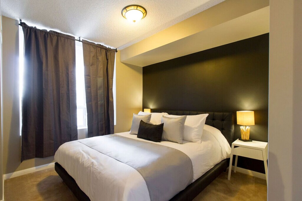 Experience luxurious living in Toronto's lively Financial District with this chic apartment that offers the perfect blend of comfort and elegance. Ideal for business travelers, families, or couples looking for a romantic getaway, this spacious 1-bedroom apartment features a comfortable queen bed and is just steps from Toronto’s top attractions. Enjoy the convenience of a 24/7 concierge service and premium fitness centre. Step into this sophisticated urban retreat with an open-concept living area that seamlessly connects with the kitchen and dining space, offering stunning skyline views. Relax on the designer sofa, stream your favorite shows on the Smart TV, or enjoy the cityscape from the comfort of your living room. The sleek, modern kitchen is a culinary haven, equipped with high-end appliances and ample counter space, making cooking a pleasure. Unwind in the peaceful bedroom with a plush queen-size bed dressed in premium linens and a spacious closet. The spa-like bathroom features a chic vanity, high-quality fixtures, and a soothing bathtub. Enjoy fluffy towels and luxury toiletries for a truly indulgent experience. Pet-friendly building with a fee and restrictions. Parking is subject to availability at an extra cost. Cribs and high chairs are available on demand for families traveling with children. Located in Toronto’s bustling Financial District, this address offers unparalleled access to top shopping centers, dining destinations, and iconic attractions, all within walking distance or a short transit ride away. Explore nearby hotspots like Nathan Phillips Square, Hudson’s Bay, and more. The neighborhood is highly walkable and bike-friendly, with multiple convenient transportation options including King Subway Station and Union Station, making it easy to explore Toronto by car, public transit, or other means. Guests will have full access to the entire apartment with complete privacy. The building offers convenient elevator access throughout. A Notice to Vacate must be sent in writing 30 nights before the departure date for stays over 30 nights, or a charge of 30 nights will apply. Reservations can be extended with 30 nights notice and are subject to availability and rate variances. Perfect for business stays, this apartment combines comfort and productivity with ultra-fast Wi-Fi, a quiet atmosphere, and thoughtful amenities, allowing you to balance work and relaxation effortlessly. [SI]