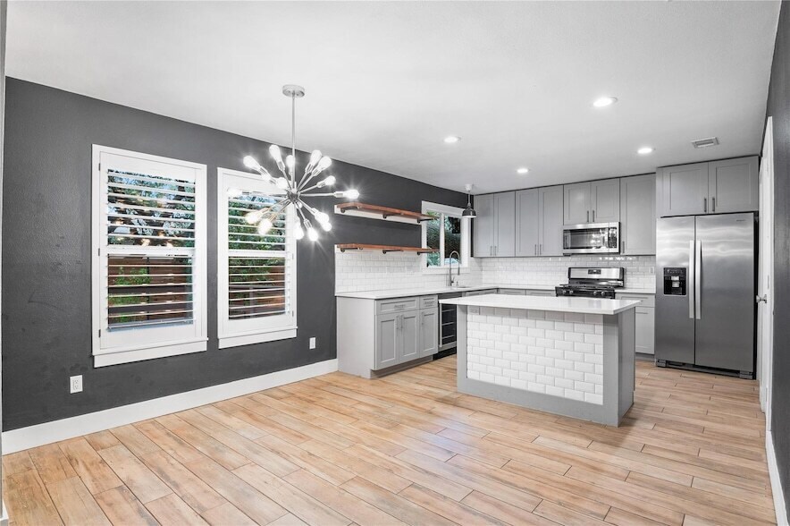 Welcome to 1104 Durham Drive, a beautifully updated Austin gem that perfectly blends modern design, comfort/convenience with Central Texas charm. Step inside to an open-concept living area illuminated by a skylight that pours natural light across the space, highlighting a versatile color palette of black and agreeable gray that complements any style. With no carpet throughout, this home offers a clean, timeless look that's both elegant and low-maintenance. The primary suite and front bedroom each feature custom closets, adding functionality and thoughtful design. Every detail has been considered from all included appliances and a built-in mini fridge, to your very own built-in sauna for end-of-day relaxation. The finished garage doubles perfectly as a home gym, studio, or traditional parking space, giving you flexibility to live your way. Step outside to the spacious backyard deck, shaded by towering oak trees, and enjoy evenings under the Texas sky while the family enjoys the playground set. Ideally situated near major employers such as Dell, Apple, Samsung, and Tesla, this home also offers a short commute to downtown Austin, The Domain, and the area's top shopping, dining, and entertainment spots.