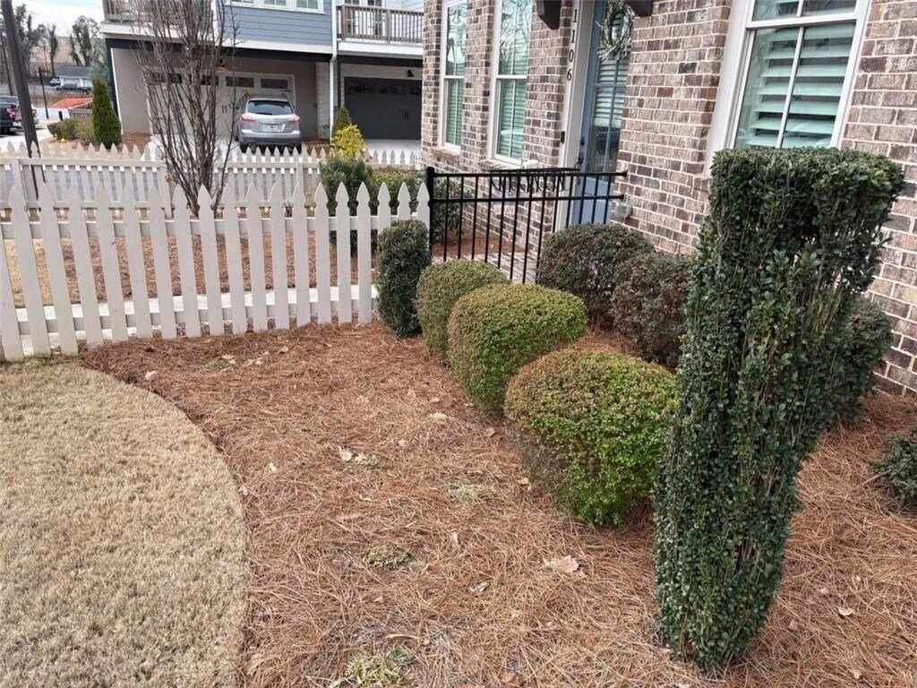 Walk to downtown Woodstock & have luxury amenities! Just steps from the restaurants & entertainment of Downtown Woodstock! This almost new 3 bedroom, 3.5 bath townhome, with fully fenced yard, goes above & beyond new construction showcasing many upgrades like plantation shutters and beautiful lighting. Wide plank luxury vinyl flooring flows through the home, complemented by an oversized 2 car garage with built-in storage and a spacious attic for additional storage. Other features include an entry level guest suite with a full bath, ideal for visitors or a private home office. The chef's kitchen is a showstopper featuring custom cabinetry and premium appliances. Upstairs, unwind in the expansive primary suite with elegant cabinetry and finishes. Outdoor living shines with a second-level front deck plus an additional rear open-air deck perfect for morning coffee or evening gatherings. Enjoy the ultimate combination of style, comfort, and walkability in one of Woodstock's most sought after communities. South on Main offers resort-style amenities including a pool, clubhouse, parks, gym, rentable garden plots, amphitheater, dog park, scenic walking trails, and a cozy fire pit area. Lawn maintained by the HOA so you can enjoy the yard without the upkeep. Two year lease incentives available!