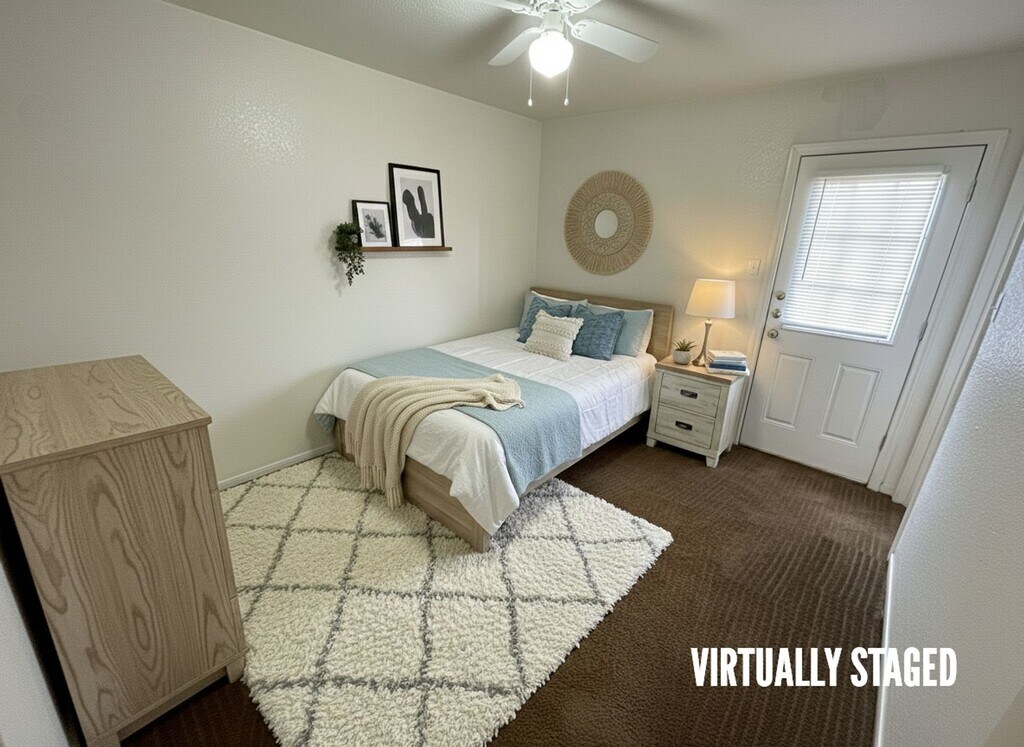 View 360 virtual tour: 2 bed 1 bath fourplex apartment conveniently located off Fort Hood Street and Old FM 440. Spacious living area, kitchen, dining space, and a hallway leading to the bedrooms and bathroom. Amenities include carpet and vinyl flooring, ceiling fans, two-tone paint, stove, refrigerator, dishwasher, and patio or balcony access from both bedrooms. Come by our office to see this property today. Disclaimer: The furnishings or enhancements shown are AI-generated and intended for inspiration only. They may not reflect the actual scale, condition, or current features of the property.