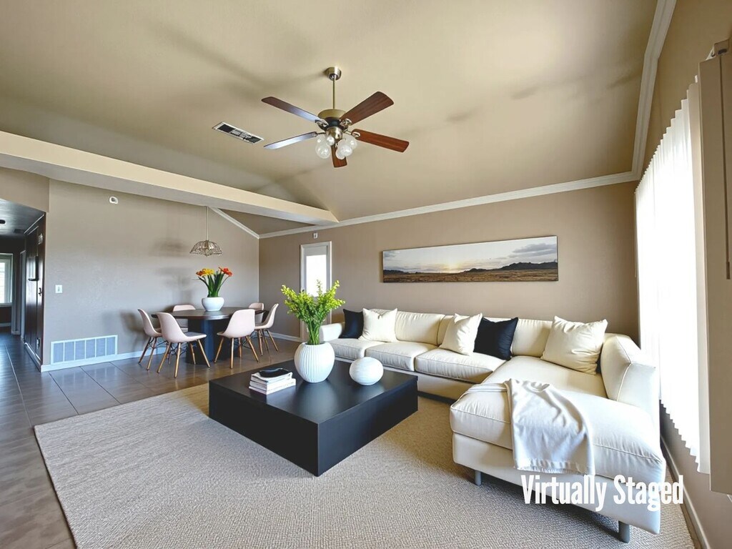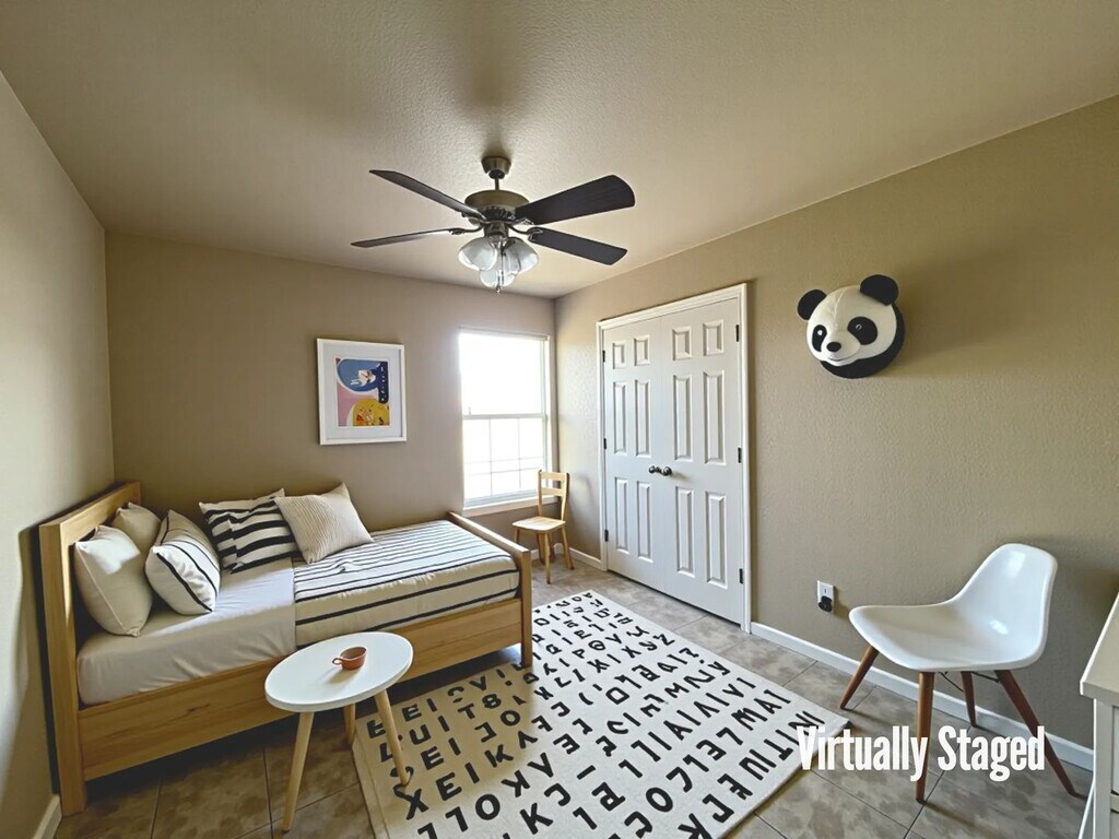 View 360 Virtual Tour: You must come and check out this fantastic three-bedrooms, two full-bath duplex with 1,296 sq. ft. of living space! The light stone and brick exterior gives this duplex a modern touch of charm. The home comes with ceramic tile flooring throughout for easy maintenance and clean-up. The kitchen comes with roomy oak cabinets, an abundance of counter space, and a food pantry. Other kitchen amenities include all-white appliances that include a coil-top stove, dishwasher, double sink, and refrigerator. The dining area is located within the open floor plan living room. The primary bedroom is located at the very back of the home and features an en-suite bathroom with a shower/garden tub combo, and plenty of shelving space in the linen closet. The 2 secondary bedrooms are located down the mid-hallway of the home and share a standard-sized full-bath. A chain-link fence surrounds the back yard, with a divider between units for family fun times in the sun. Restaurants, shopping, and schools are a short minute commute. Disclaimer: The furnishings or enhancements shown are AI-generated and intended for inspiration only. They may not reflect the actual scale, condition, or current features of the property.