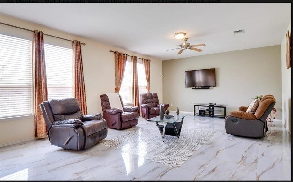 ***Will accept short term rentals!*** SOLAR PANELS!! Great 4 bedroom/3.5 bath home for lease in Round Rock! No carpet throughout main level. Large living area with chef's kitchen with center island and SS appliances. Two dining areas, as well as two living/flex spaces that would be great for entertaining. All bedrooms upstairs along with a good size game room. Oversized primary suite with ensuite bath. Spacious secondary rooms with 2 additional full baths. Covered back patio overlooking large backyard. Home has solar panels, and average monthly electric bill is approximately $35. *Refrigerator, washer and dryer INCLUDED!!
