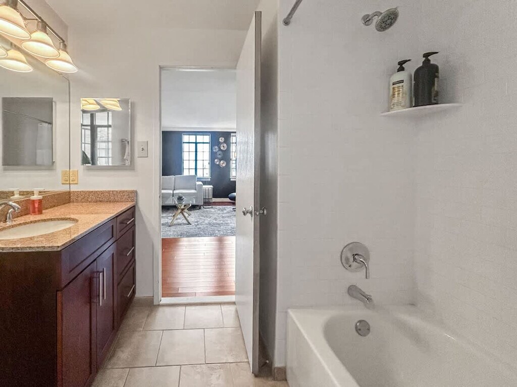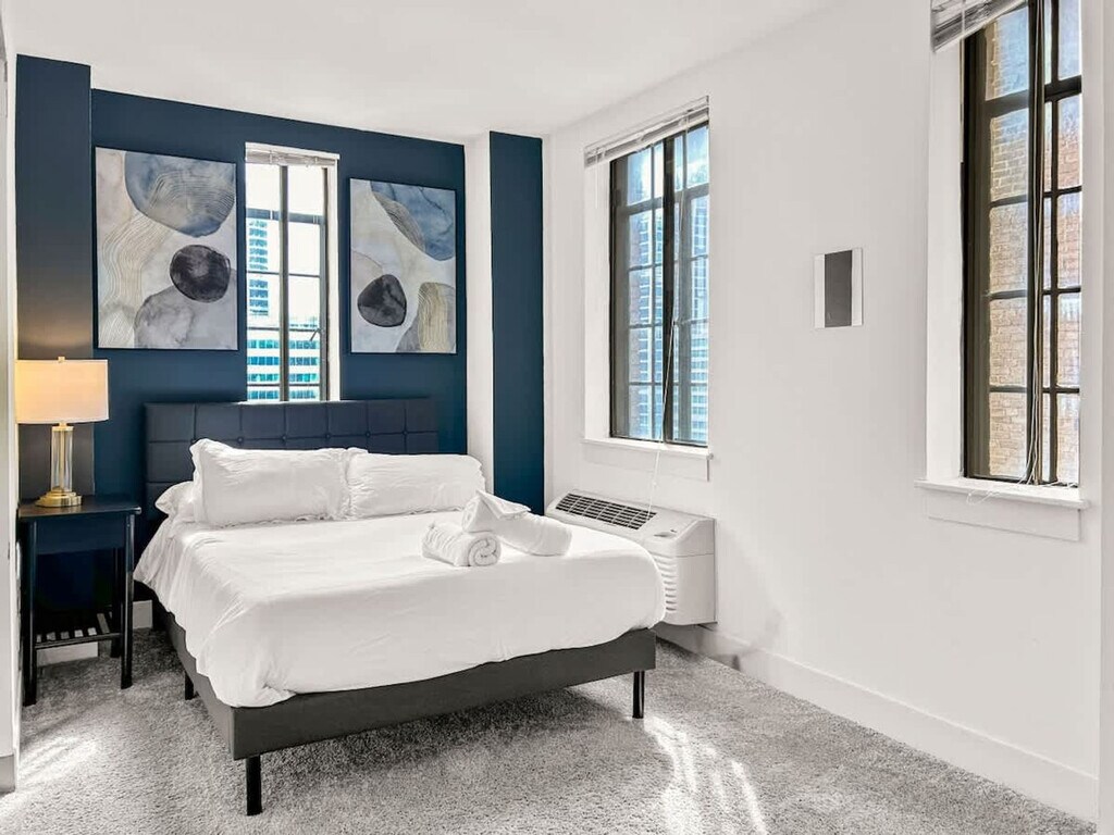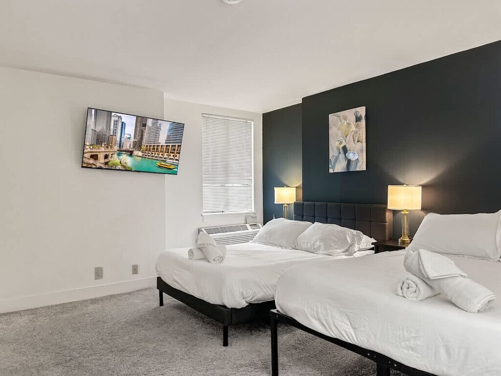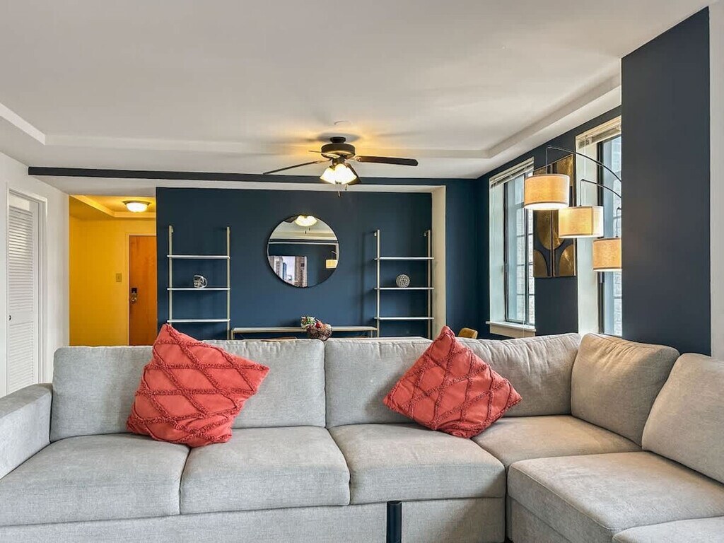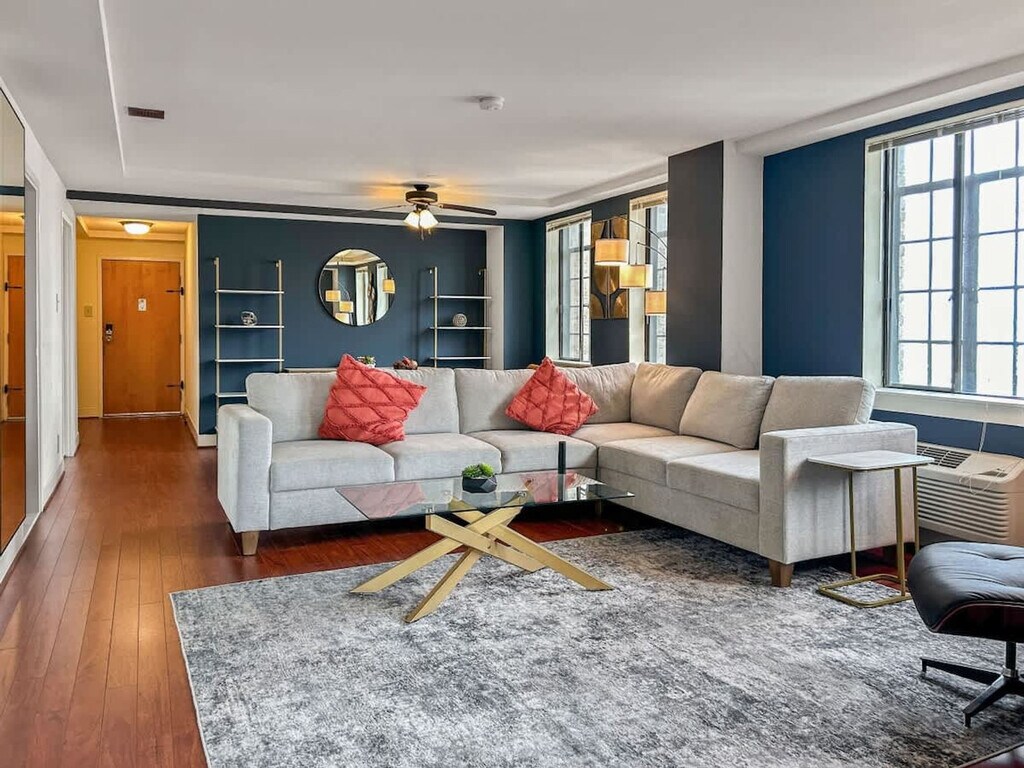 Located in the heart of Philadelphia's vibrant Center City, this 2-bedroom apartment offers an ideal blend of urban convenience and modern living. This prime location places you within walking distance of some of the city's most iconic landmarks, cultural attractions, dining hotspots, and shopping destinations. This stylish retreat offers a perfect blend of comfort, convenience, and entertainment amenities, ideal for families or groups visiting the city. Sleep comfortably in the expansive first bedroom, furnished with two double beds, accommodating larger groups or families with ease. Relax in the second bedroom featuring a plush queen-sized bed and a dedicated workspace, perfect for remote work or catching up on emails during your stay. Enjoy relaxation and entertainment in the living room, equipped with a comfortable sofa bed for additional sleeping arrangements. Cook meals with ease in the fully equipped kitchen, complete with modern appliances and essential cookware. Meticulously cleaned and maintained, the bathroom provides a hygienic and welcoming space for your stay. This property offers more than just a place to stay—it’s a lifestyle. Take advantage of premium on-site amenities, including a full basketball court for a friendly game or solo practice, and a modern gym equipped with everything you need to stay on top of your fitness routine. Whether you're looking to break a sweat or just unwind, you'll have everything you need right at your doorstep. Centrally located in Center City, you're surrounded by renowned restaurants, theaters, shopping centers, and cultural attractions. Explore nearby landmarks like the Philadelphia Museum of Art, Rittenhouse Square, and the lively atmosphere of Avenue of the Arts. Smoking is strictly prohibited inside the property. A cleaning fee of $500 will be charged for any violation. Check-in time is after 4 PM, and check-out time is by 10 AM. Late check-outs without prior approval will incur additional charges. Please dispose of garbage in the designated bins and do not leave trash outside the unit to avoid attracting pests. Treat the property and its contents with respect. Any damages will be charged to the guest. Ensure that the shower curtain is kept inside the shower basin while showering to prevent water from spilling onto the floor. [SI]