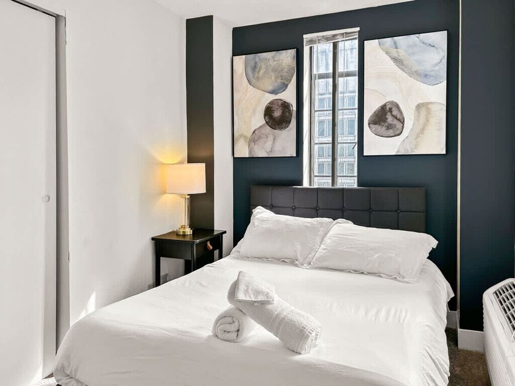 Located in the heart of Philadelphia's vibrant Center City, this 1-bedroom apartment offers an ideal blend of urban convenience and modern living. This prime location places you within walking distance of some of the city's most iconic landmarks, cultural attractions, dining hotspots, and shopping destinations. This inviting space combines modern comfort with convenient amenities, perfect for your stay in the city. Sleep comfortably in the spacious bedroom featuring a queen-sized bed, along with a crib for families traveling with infants. There's also a dedicated workspace, ideal for remote work or studying. Relax in the cozy living area, furnished with a comfortable sofa bed and a smart TV for entertainment. Cook meals with ease in the fully equipped kitchen, complete with modern appliances and essential cookware. Refresh in the sleek bathroom offering a shower/tub combination and complimentary toiletries. This property offers more than just a place to stay—it’s a lifestyle. Take advantage of premium on-site amenities, including a full basketball court for a friendly game or solo practice, and a modern gym equipped with everything you need to stay on top of your fitness routine. Centrally located in Center City, you're surrounded by renowned restaurants, theaters, shopping centers, and cultural attractions. Explore nearby landmarks like the Philadelphia Museum of Art, Rittenhouse Square, and the lively atmosphere of Avenue of the Arts. Smoking is strictly prohibited inside the property. A cleaning fee of $500 will be charged for any violation. Check-in time is after 4 PM, and check-out time is by 10 AM. Late check-outs without prior approval will incur additional charges. Please dispose of garbage in the designated bins and do not leave trash outside the unit to avoid attracting pests. Treat the property and its contents with respect. Any damages will be charged to the guest. Ensure that the shower curtain is kept inside the shower basin while showering to prevent water from spilling onto the floor. [SI]