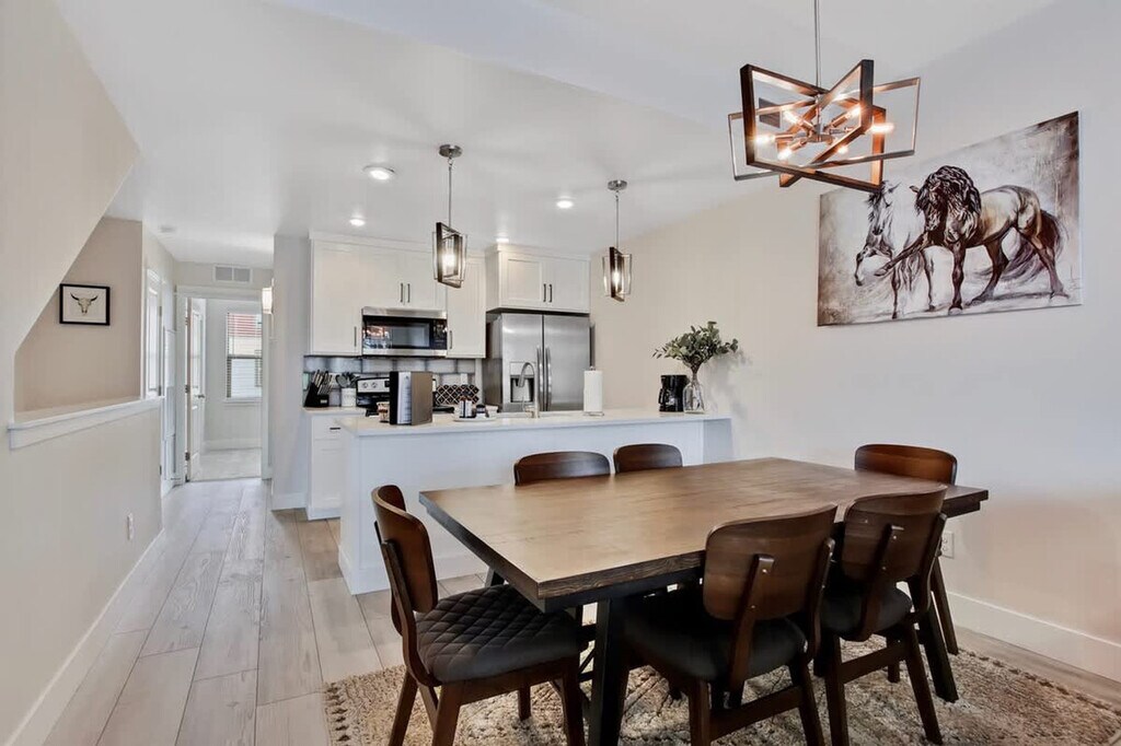 This alluring farmhouse-styled townhome, built in 2020, offers a perfect blend of fresh modernity and rustic charm. Located in the heart of McCall, Idaho, this home invites you to feel at home with its cozy ambiance and thoughtful design. Kick off your boots, hang up your hat, and enjoy the comfort of Tempur-Pedic mattresses in every room, complemented by hotel-grade linens for a restful stay. The townhome features three bedrooms, each with an en-suite bathroom, a living room, a fully stocked kitchen, and a dining table with seating for six. Situated less than a mile from Payette Lake, it offers convenient access to local amenities including a grocery store, pharmacy, coffee shops, restaurants, and the vibrant Downtown area with shopping and delightful ice cream and candy shops. Up to two dogs are welcome with a fee of $50 for one dog and $100 for two dogs, collected during the digital check-in process. Early check-in or late check-out is available upon request for a small fee, subject to availability. Nestled in the popular area of McCall, Idaho, this property provides breathtaking scenery and a wealth of outdoor activities. Enjoy fishing, swimming, or boating on the lake, rent bicycles to explore the town, hike the trails, or embark on off-road adventures. The area is also home to wildlife such as deer, foxes, and squirrels, offering a true nature experience. This is a smoke-free home, with no smoking or vaping allowed. Violations may result in additional cleaning fees. Quiet hours begin at 10:00 PM as per city regulations, ensuring a peaceful environment. Enjoy contactless check-in with our smart lock system, and reach out via message or text if you need assistance during your stay. A digital guestbook is provided with essential details and local recommendations.