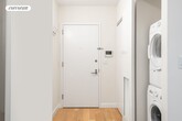 Sunny 5th floor studio with a washer/dryer and a large balcony! Pristine space, floor to ceiling windows, stone quartz countertop with breakfast bar. Sleek stainless appliances, Bosch W/D ! Hard wood oak floors, soft lighting. Hot water included. GYM & bike storage included. Enjoy living close to the 6 train for a 20 minute commute to Midtown. Small dogs ok, cats ok. $20 app feeOne month rent One month security $125 move in fee