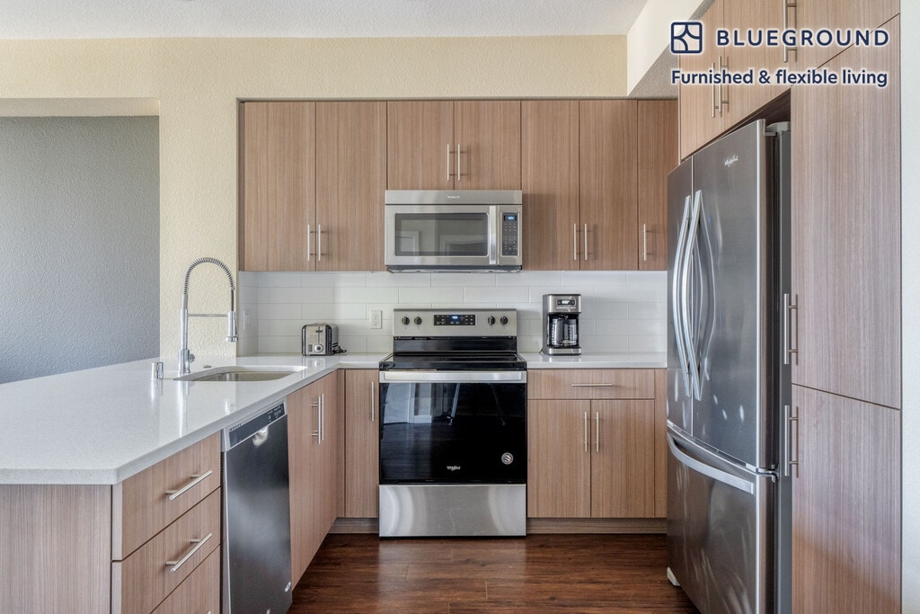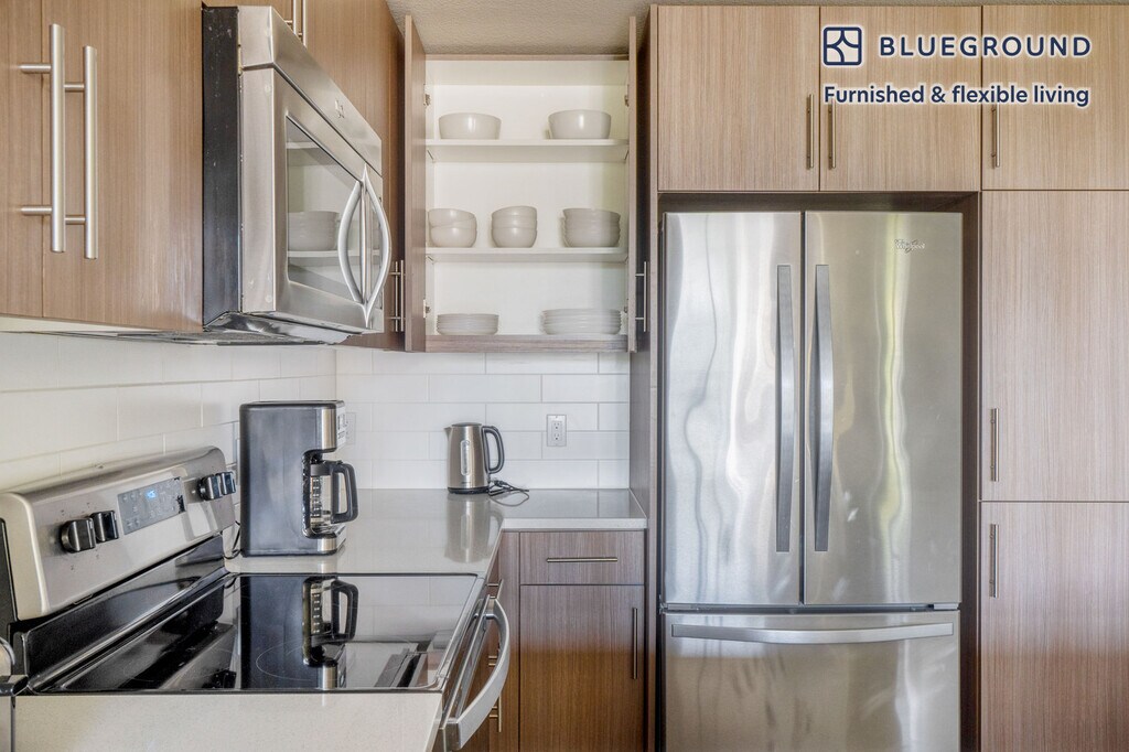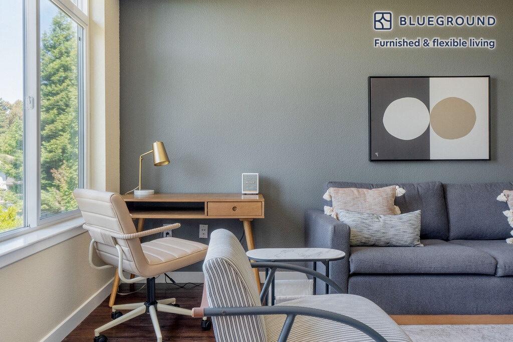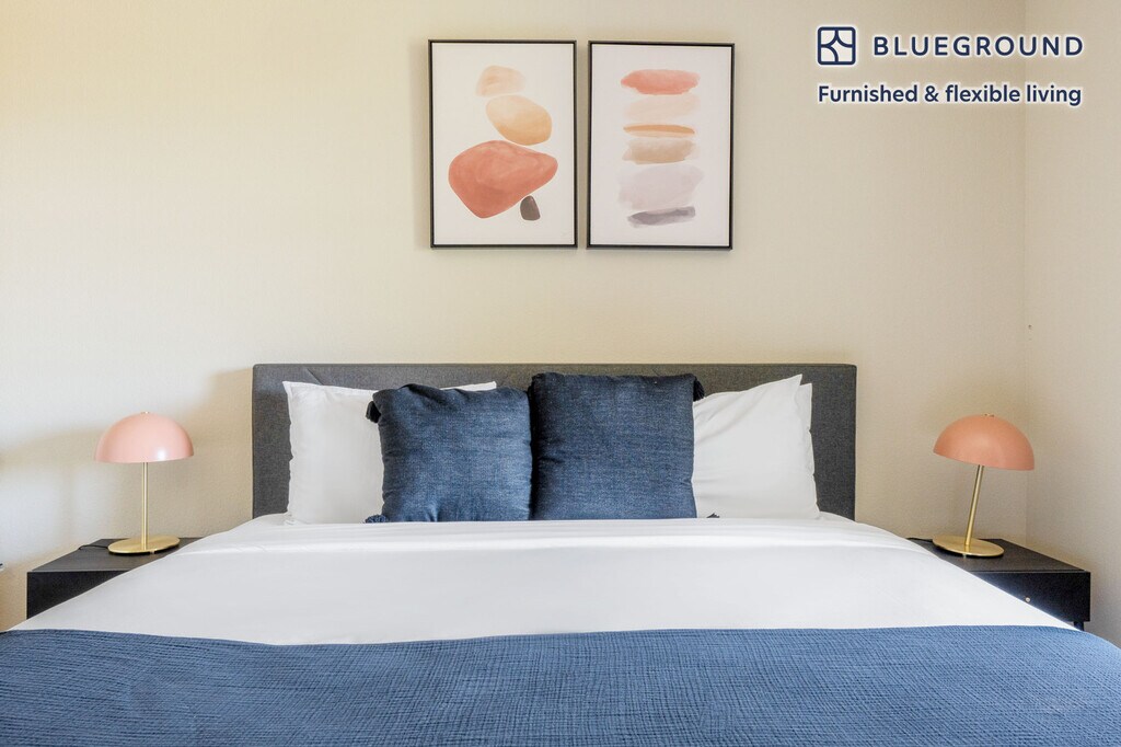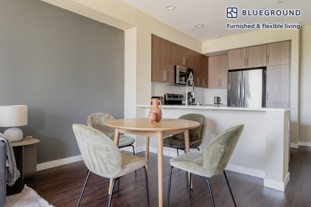 Show up and start living from day one in Mountain View with this cozy one bedroom Blueground apartment. You’ll love coming home to this thoughtfully furnished, beautifully designed, and fully equipped Mountain View home. (ID #SFO1441) The advertised rate of $4,550/month is the lowest available price, based on a 11 month(s) and 29 day(s) stay with a move-in date of November 7, 2025. Rates vary depending on the duration of stay, season, and other parameters. For exact pricing and additional pricing components, please visit our website and enter your desired move-in and move-out dates. The rate is applicable when billed upfront; it can be higher if billed in multiple payments. Brokers are welcome to reach out. Were you looking for an unfurnished lease? Try Blueground instead and upgrade from unfurnished to furnished living: - Furnished at rates comparable to unfurnished - No setup or furniture costs - save thousands - Move-in ready - save time, just bring your suitcase Designed with you in mind Gorgeous furniture, fully equipped kitchen, smart TV, and a premium wireless speaker are just a few of the amenities you’ll find inside this one bedroom apartment. Ideally located in Mountain View, you’ll find a lot to love outside as well. When you’re ready to relax, you’ll be happy to discover every Blueground bedroom comes with superior quality mattresses, luxury linens, and cozy towels. We handle everything so you can simply show up and start living. This apartment also offers in-apartment laundry. Sleeping arrangements King Bed, 70.8in/180cm Amenities Building amenities unique to this one bedroom apartment include an on-site: - BBQ Area - Dryer - Elevator - Swimming pool - Washing machine - Parking - Pets allowed Arrival and ongoing support The entire apartment is yours to enjoy! Throughout your stay, you’ll have access to our Client Experience team through the Blueground App. You can schedule additional cleanings, submit maintenance requests, and view our neighborhood recommendations with just a few taps. We’ll share all details upon confirmation of your stay. Ideally Located This furnished home is located in Mountain View, in Santa Clara County. It is named for the unbeatable views of the Santa Cruz Mountains. Situated in the southern end of the San Francisco Bay Area, residents enjoy the many parks, specifically Shoreline Park, which is the largest in Mountain View and includes an amphitheater and golf course. Go for a walk or run on the San Francisco Bay Trail. In addition, Stevens Creek goes through Mountain View and empties in Shoreline. A paved path for pedestrians and bikes runs alongside the creek, which is ideal for nature lovers. The nearby cities of Palo Alto, Los Altos and Sunnyvale are all easily connected by bus and rail service. Other things to note Building amenities may have an extra cost. This Blueground apartment has flexible lease options, allowing you to book it for one month, a year, or more. Pets are welcome, though weight limits and breed restrictions apply and may incur fees. Parking is offered based on availability and is subject to a fee. We take great pride in ensuring every photo displayed is shot in our own units with our actual furnishings. That said, we regularly refresh our decor and furniture arrangement, which may differ from what’s pictured. [SI]