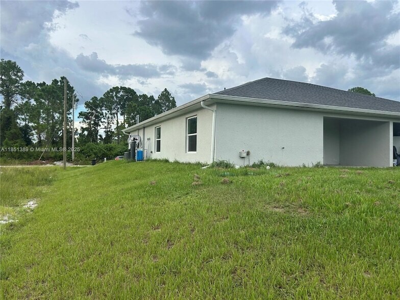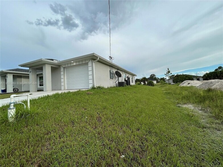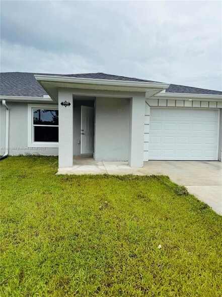This rare opportunity offers a beautifully maintained multi-family home featuring two units, one of only two in the quiet, sought-after neighborhood of Lehigh Acres. Built in 2023, this unit is move-in ready and available for immediate occupancy.The spacious 3-bedroom, 2-bathroom home includes a one-car garage and boasts elegant porcelain tile flooring throughout. Enjoy cooking in the modern kitchen equipped with stainless steel appliances. Relax or entertain on the inviting porch, terraza, and patio areas. Located on a peaceful street, this property combines comfort, convenience, and style. Don t miss out schedule your private tour today! Easy application process. Call now to secure your new home!