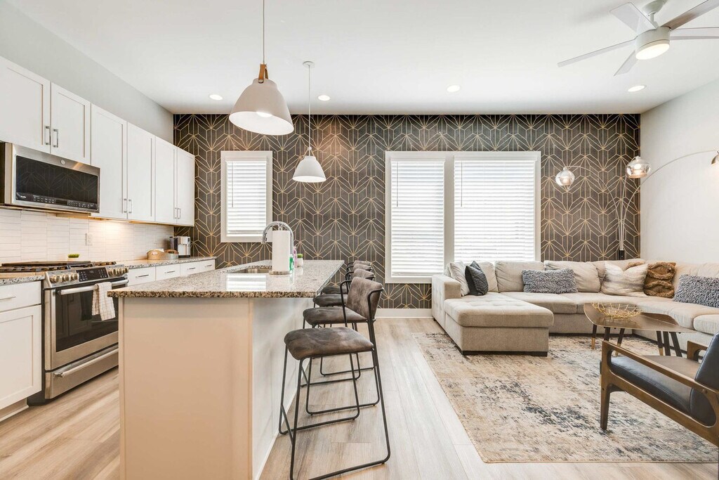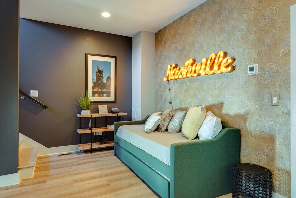 Feel at home in this 3-story rooftop retreat in Nashville, designed for group getaways. The Sweet Spot offers spacious living areas, a fully stocked modern kitchen, and a rooftop deck with downtown views. Enjoy amenities such as 4K TVs in common areas, high-speed Wi-Fi, a washer and dryer with detergent provided, a coffee maker with supplies, premium towels and linens, essential toiletries, a ping pong lounge, and photo op walls. An optional 1-car garage is available if the ping pong table is moved. Located minutes from downtown, this apartment places you in the heart of Nashville's cultural scene, near the vibrant neighborhoods of East Nashville and Germantown. Explore boutiques, art galleries, and music venues, and enjoy dining at The Treehouse, Butcher & Bee, and Henrietta Red, all a short stroll away. Smoking is not allowed inside the property or near open doors or windows, and a minimum $500 fine applies for violations. Quiet hours are from 10 pm to 8 am on weekdays and 12 am to 8 am on weekends. Any undisclosed or unauthorized pet will result in eviction, forfeiture of all rent, and a $150 penalty per pet. Registration Number: [SI]