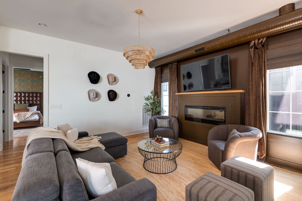 Welcome to The Gambler, a stylish Nashville retreat that blends industrial design with country charm, inspired by Kenny Rogers' iconic song. Perfect for bachelorette or bachelor parties, family escapes, or couple’s retreats, this apartment offers a spacious layout with ample amenities. Enjoy a fully equipped kitchen, rooftop grill, pool table, bocce, and a rooftop patio for cocktails, ideal for creating unforgettable memories with friends and loved ones. You'll love the location, just 5 minutes from both The Gulch and 12 South. The apartment features a rooftop lounge area, an open layout with a state-of-the-art kitchen, a bonus room with a pool table, high-speed Wi-Fi, private office space, a record player, and smart TVs throughout the house for easy access to all your favorite streaming apps. There is a two-car garage and additional street parking available. The apartment is dog-friendly with a $150 pet fee per stay for up to 2 dogs, with no breed or weight restrictions. To further elevate your stay, a variety of experience add-ons are available, including early check-ins and late check-outs, private chefs, in-home massages, in-home yoga sessions, and more. Nestled at the intersection of Nashville's vibrant 12th South and Edgewood neighborhoods, this home places you right in the heart of the city, with everything Nashville has to offer just 10 minutes away. A cozy coffee spot, Makai, and Smoothie King are just a block away. Within a short drive or a leisurely 10-15 minute walk, you'll discover fantastic restaurants, bars, and boutiques. Some favorite spots in Edgehill include Barcelona and Sadie’s. Walk in the other direction and you'll find yourself in the heart of the 12th South neighborhood, with gems like Lady Bird Tacos, Fonda, The Buttermilk Ranch, and Burger Up. Quiet hours are from 10 p.m. to 8 a.m. Renters must be at least 21 years of age, and guests under the minimum age must be accompanied by a parent or legal guardian. The property shall not be used by more than the number of adults and children listed in your reservation. Pets are not permitted unless specifically noted in your reservation. No smoking is permitted on the property, including porches, decks, or outdoor areas, at any time. All guests shall not engage in illegal activity. Refrain from using decorations that include glitter or confetti or using tape, tacks, or other adhesive on the surfaces. There will be an additional cleaning fee of up to $500 for violations of the house rules above or for excessive cleaning required. Registration Number: [SI]