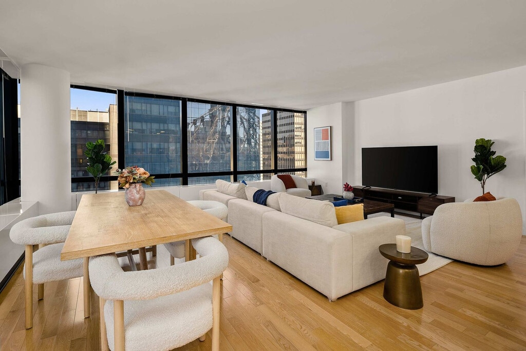 Feel at home in this sun-drenched, 15th-floor, 3-bedroom home on the Upper East Side, offering unparalleled luxury in the heart of New York City. This residence sits within one of Manhattan’s best full-service luxury buildings. From the moment you enter, natural light pours into the apartment through floor-to-ceiling windows, illuminating a spacious living and dining area that stretches out toward panoramic views of the city. The living room features high ceilings, a full-size seating area with oversized furniture from brands including Restoration Hardware and Arhaus, and a large dining table that offers a convenient space for meals. Complete with a smart TV and blazing-fast Wi-Fi, this apartment also offers connected access to streaming services. All three spacious, windowed bedrooms feature high-end furniture, comfortable mattresses and bedding, and ample closet space. Two bedrooms offer en-suite bathrooms, including soaking tubs, while the third full bathroom sits just inside the apartment’s entrance. Additional highlights include a full-size washer and dryer, hardwood flooring throughout, high-speed internet, and abundant storage. Enjoy full access to the building’s amenities, including a tranquil indoor pool, modern fitness center, resident lounge, and 24-hour concierge service. Perfectly situated in the Upper East Side, this unit places you moments from Central Park, Museum Mile, fine dining along Madison Avenue, and world-renowned cultural institutions. This is city living at its most elevated, offering light, luxury, and landmark views in one of Manhattan’s most coveted neighborhoods. Utilities for this unit are included in the listed price (Wi-Fi, electric, heat, etc). Excessive use of A/C (exceeding $250/month) will be billed back to guests after move-out. Smoking is not allowed on the property. [SI]