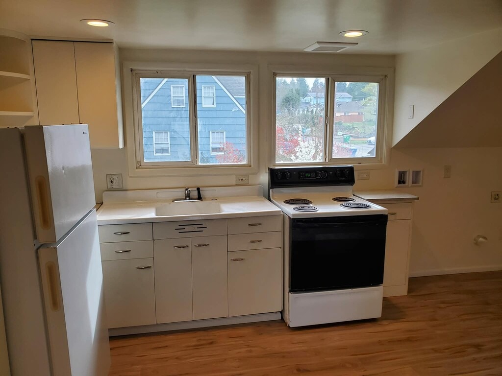 Property Id: 2221464 Located in the peaceful Eastside neighborhood of Olympia, this newly renovated upstairs unit offers convenient walking distance to downtown restaurants, shopping, and the capitol campus. Interior: Enjoy NEW flooring, NEW cordless faux wood blinds, and fresh paint. Includes full-size stove and refrigerator in kitchen/dining combo, in-unit washer and dryer hookup, roomy bedroom, and large bathroom. Exterior: Offers a spacious front and partially-fenced back yard, uncovered driveway with additional street parking available in front of the duplex. Requirements: Credit score of at least 650. Tenant monthly gross income must be 2.5 times the monthly rent ($2500). No smoking on property. Pets negotiable with additional, refundable pet fee. Applicant pays $45 screening fee to Turbo Tenant - our online rent payment and maintenance portal provider. Close to I-5 and bus line. Water, sewer, and garbage are included in rent. This is a charming, older house (turned duplex) with plenty of original features (no dishwasher).