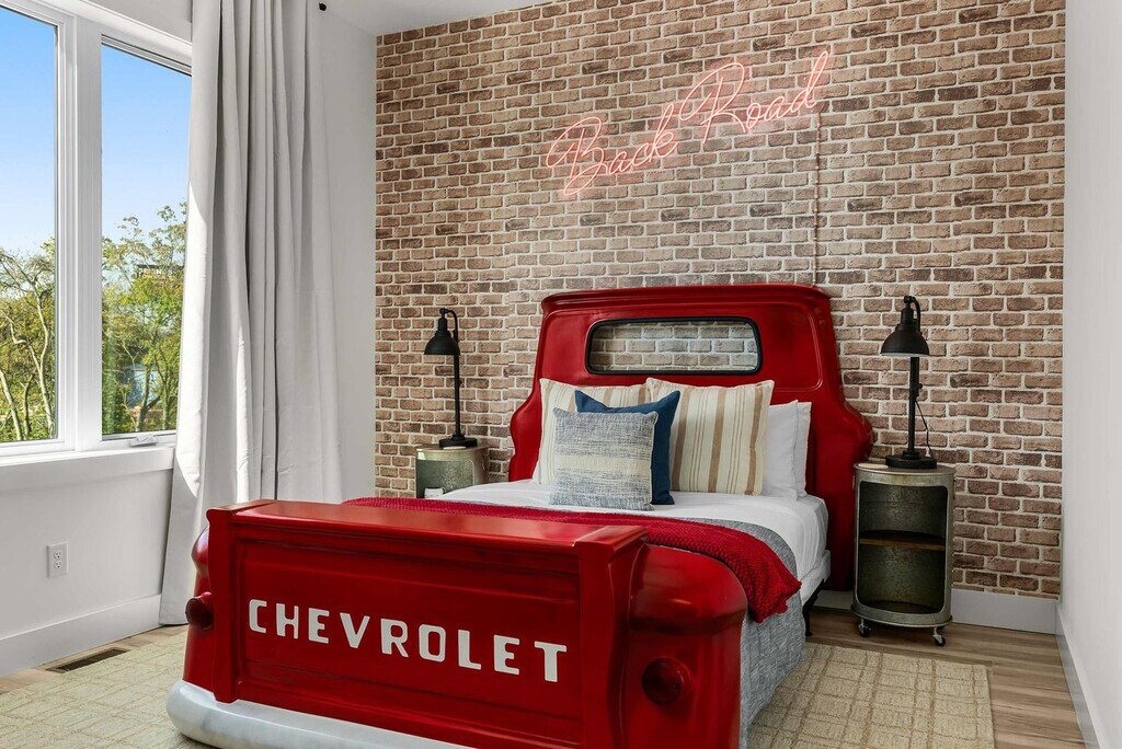 Discover the perfect blend of luxury, nostalgia, and excitement in this 4-bedroom, 4-bathroom retreat, just minutes from downtown Broadway. Unwind on the rooftop deck with a hot tub and lounge, enjoy the game room with Ping Pong and giant beer pong, and admire a playful mural and red Chevy bed that adds character to the space. Your entire group can relax in style while staying close to the city’s vibrant energy, making this the perfect escape for an unforgettable Nashville vacation. This property has a lot of stairs. The first floor features a bonus rec room garage and a king bedroom with an en-suite full bathroom. The main floor offers an open-concept gathering space equipped with a smart TV, a fully stocked kitchen, a living room, and a queen bedroom with a full en-suite bathroom. The next floor includes two bedroom suites, each with king-size beds and twin trundles. The top floor boasts a private outdoor area with a spacious rooftop double deck, its own lounging area, and a hot tub. Free street parking is available both in front and behind the unit. Guests who stay three weeks or longer will incur an additional cleaning fee, which is not included in the pricing you see but will be an additional add-on fee. There is an additional $500 fee for guests wanting to book this property for filming and/or photography. Each request will be reviewed for approval, and a location agreement and COI must be provided prior to your shoot date. Perfectly located close to all the action, you're just minutes away from Nashville's Top Golf, numerous great restaurants in East Nashville and Germantown, and all the excitement on downtown Broadway. Catch a game at the Nissan Stadium, a concert at The Ryman or Bridgestone Arena, or bring the kids to the Adventure Science Center. You're close to it all! Ride shares are readily available for easy transportation. Additional guests outside of your confirmed guest count are not allowed on the property unless pre-approved prior to your stay. There is a zero-tolerance policy on the property being used as a home base for parties or visitors outside of your confirmed guest count to come and go. If you exceed the confirmed guest count in your reservation without prior approval, you will be asked to leave immediately and charged a $500 fine. Early check-in or late check-outs must be pre-arranged. Any non pre-arranged late check-outs can result in withholding of deposit. The only way to guarantee an early check-in is if the night prior to your stay is available, it can be blocked off for you at half the nightly rate. The same goes for late check-out. While staying, ensure the garage door is shut whenever not actively using the garage. A lot of time, care, and money has been put into this home. Only the best guests who will respect the property and neighbors are welcome. Not suitable for rowdy crowds. Primary guest must be 21 years or older. Your photo ID information must match the information on your credit card. Registration Number: