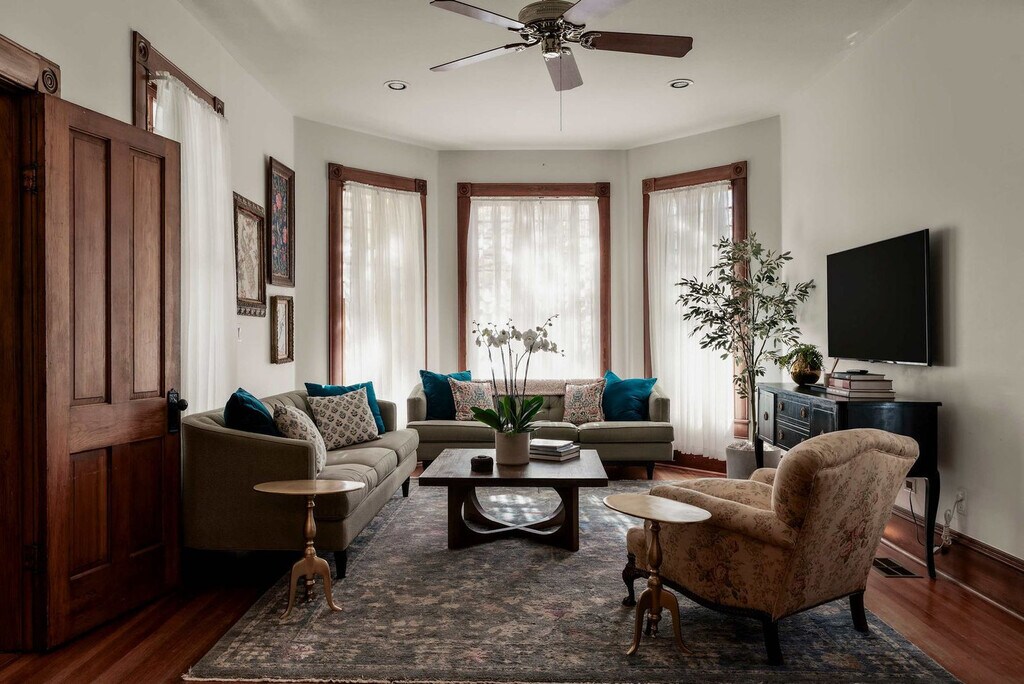 Welcome to your Austin getaway! Feel at home in this bright 5-bedroom home in historic Clarksville, offering the perfect balance of quiet, residential comfort and urban excitement. This home features a blend of modern and traditional features, complementing the historic essence of the home. Each room features an abundance of natural light, highlighting the beautiful natural wood finishes throughout. The fully equipped kitchen is perfect for cooking and includes dining for eight. The game room features a bar, pool table, and ping pong table. A pet fee applies for dogs that are 18 months or older and weigh less than 35 lbs. Nestled in the heart of one of Austin’s most charming and historic neighborhoods, this home is within walking distance to some of the city's most beloved spots. Downtown Austin is just a 5-minute drive or an easy 20-minute walk away, offering access to even more attractions, dining, and cultural landmarks. Clarksville is renowned for its culinary gems, boutique shopping, and art galleries. Pease Park is a short 10-minute walk away, and Zilker Park is a 20-minute walk away. Lady Bird Lake is also a short walk away. Quiet hours are from 10:00 PM to 10:00 AM. No commercial photography, parties, events, or large gatherings are allowed. Only registered guests are allowed on the property unless approved in advance. Dogs are not allowed on furniture, and guests must clean up all pet waste. Pets must be on a leash when outside the property. No cats are allowed. A $150 cleaning fee applies if these rules are not followed. Smoking or vaping inside the home is not permitted, and a $200 cleaning fee will be applied if signs of smoking are found indoors. A $45 handling fee applies, in addition to the actual shipping cost, to cover the time and materials required for packaging and mailing personal items left behind at the property. To keep our homes well-maintained and enjoyable for everyone, we kindly require that all primary renters be at least 26 years of age. Bedroom 1 (1st Floor): King-size bed, luxury linens, elegant bathroom with soaker tub, separate shower, and two sinks. Bedroom 2 (1st Floor): Bunk room with 2 twin-sized bunk beds. Bedroom 3 (2nd Floor): Queen-sized bed, lots of natural light, connects to shared en-suite full bathroom. Bedroom 4 (2nd Floor): 2 queen-sized beds, connects to shared en-suite full bathroom. Bedroom 5 (2nd Floor): 2 twin-sized beds with private en-suite full bathroom. Registration Number: [SI]
