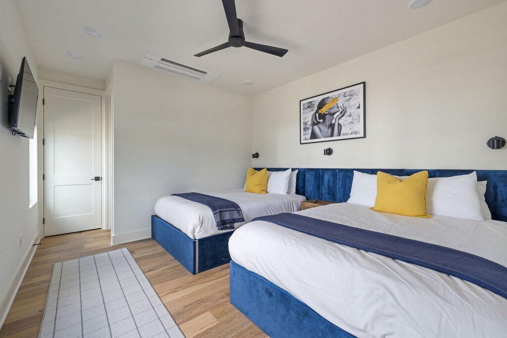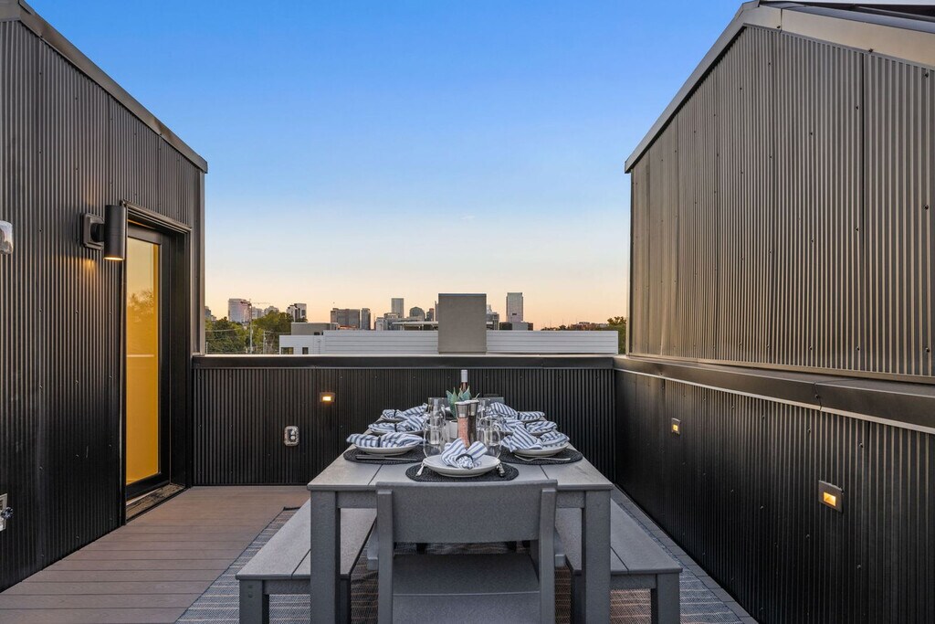 Feel at home in The Ashford, a brand-new luxury townhome nestled in the vibrant Wedgewood-Houston Arts District. Designed for groups seeking a stylish retreat close to downtown, The Ashford pairs sleek modern design with the comfort and warmth of home. Enjoy skyline views from your rooftop lounge, unwind by the firepit, and experience Nashville’s creative spirit just steps from your door. This home offers a rooftop oasis with outdoor dining, a firepit lounge, and stunning views of the Nashville skyline. The gourmet kitchen features an oversized island with seating for 7 and top-of-the-line stainless appliances. The spacious living area has an open-concept design with a smart TV, plush seating, and abundant natural light. For added convenience, there is a mini bar with mini fridge and half bath on the top level for rooftop entertaining, as well as a washer and dryer. On-site parking is shared with three neighboring homes and accommodates up to four vehicles. Street parking is also available out front. This home is dog friendly with a $150 pet fee for up to two dogs. The Ashford is perfectly situated in Wedgewood-Houston, a hub for Nashville’s art, music, and food scene. Walk to nearby favorites like Earnest Bar & Hideaway, Dozen Bakery, Diskin Cider & Jackalope Brewing, and SoHo House Nashville. Geodis Park is just 5 minutes away. Commute Times by Car: Geodis Park – 5 mins (1.5 miles), The Gulch – 6 mins (1.8 miles), Broadway / Downtown – 7 mins (2.2 miles), 12 South – 8 mins (2.5 miles), and Vanderbilt – 9 mins (2.7 miles). Quiet hours are from 10 p.m. to 8 a.m. Renters must be at least 21 years of age, and guests under the minimum age must be accompanied by a parent or legal guardian. The property shall not be used by more than the number of adults and children listed in your reservation. Please refrain from using decorations that include glitter or confetti or using tape, tacks, or other adhesive on the surfaces. There will be an additional cleaning fee of up to $500 for violations of the house rules or for excessive cleaning required. [SI]