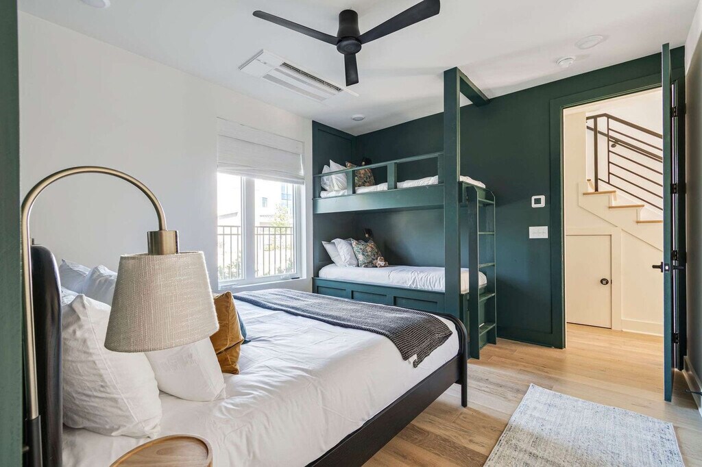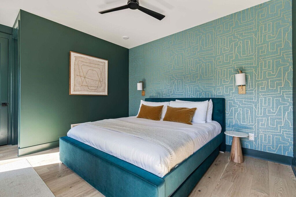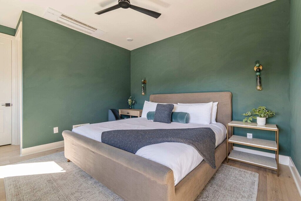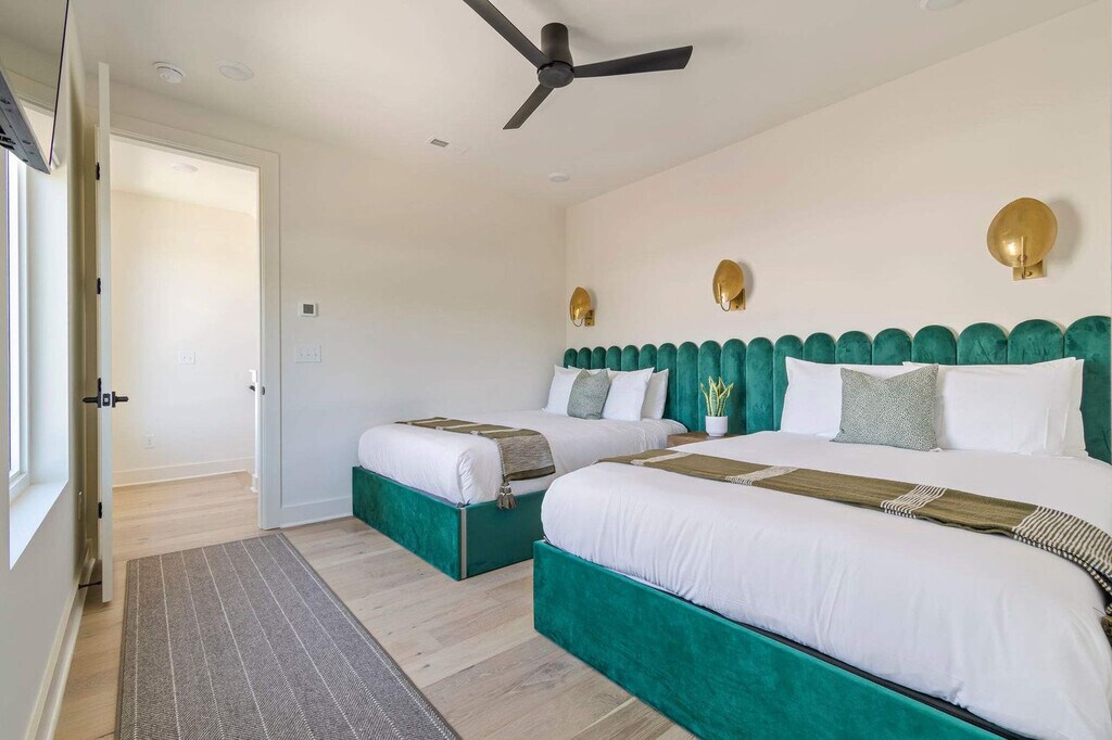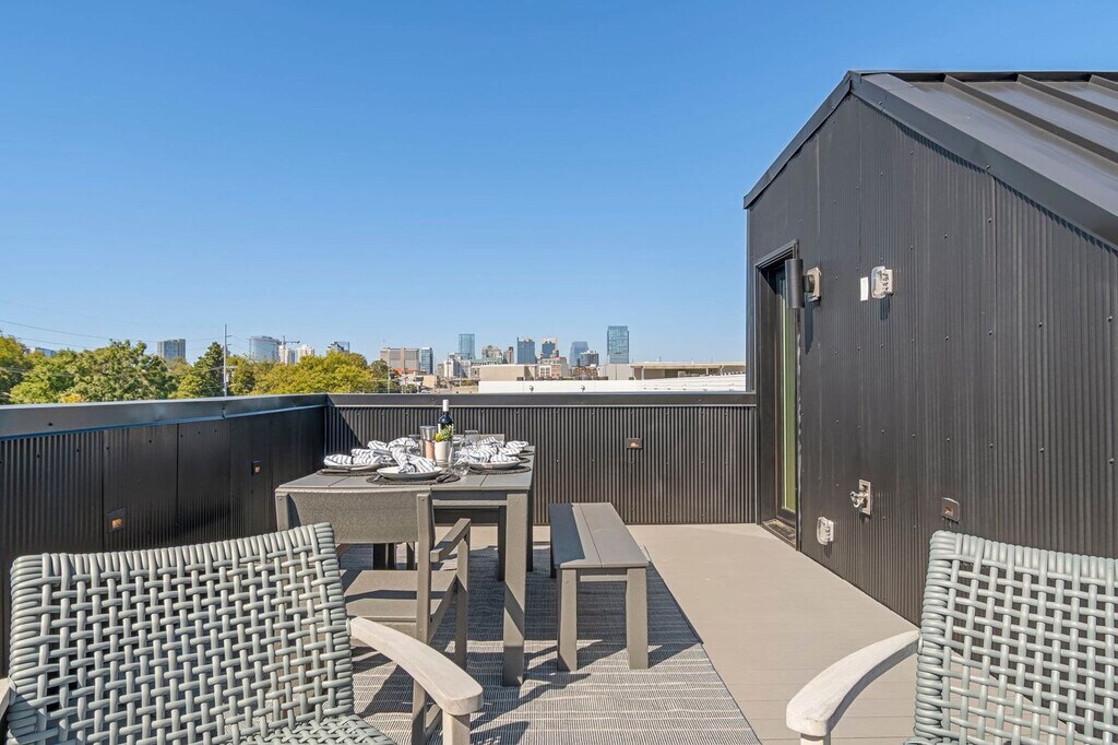 Feel at home in this brand-new 4-bedroom, 4.5-bathroom end-unit luxury townhome in the heart of Wedgewood-Houston, one of Nashville’s most dynamic and design-forward neighborhoods. Thoughtfully crafted for both comfort and style, this apartment features curated interiors, expansive natural light, a fully equipped kitchen with stainless steel appliances, open shelving, and oversized island with bar seating. Enjoy the spacious living area with a 55” TCL Smart TV, four private bedroom suites, each with its own full bathroom and Smart TV, a mini bar with mini fridge and half bath on the top level for rooftop entertaining, a private rooftop retreat with lounge seating, a gas fire pit, spacious dining table, skyline views, a washer and dryer for added convenience, and high-speed Wi-Fi and Smart TVs throughout for all your favorite streaming apps. Dog friendly with a $150 pet fee for up to 2 dogs. Free street parking is available. The Linden is perfectly situated in Wedgewood-Houston, a hub for Nashville’s art, music, and food scene. Walk to nearby favorites like Earnest Bar & Hideaway, Dozen Bakery, Diskin Cider & Jackalope Brewing, SoHo House Nashville, and Geodis Park. Commute Times by Car: Geodis Park – 5 mins (1.5 miles), The Gulch – 6 mins (1.8 miles), Broadway / Downtown – 7 mins (2.2 miles), 12 South – 8 mins (2.5 miles), and Vanderbilt – 9 mins (2.7 miles). Renters must be at least 21 years of age. Guests under the minimum age must be accompanied by a parent or legal guardian. The property shall not be used by more than the number of adults and children listed in your reservation. All guests shall not engage in illegal activity. Quiet hours are from 10 p.m. to 8 a.m. Refrain from using decorations that include glitter or confetti or using tape, tacks, or other adhesive on the surfaces. There will be an additional cleaning fee of up to $500 for violations of the house rules or for excessive cleaning required. [SI]