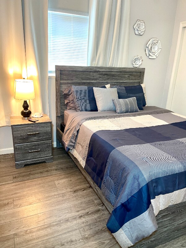 Property Id: 2366164 This rental is a private one-bedroom, one-bathroom home with a comfortable, flexible layout. The bedroom is furnished with a queen-size bed and includes a TV, creating a relaxing place to unwind. The bathroom features a bathtub and shower combo and is set up for everyday convenience. In addition to the bedroom, the living room includes a sectional sofa. The living room also includes a TV and flows easily into the rest of the space. The unit features a full kitchen with most major appliances, a coffee bar, and ample storage throughout. Outdoor space is a highlight, with a private backyard with outdoor furnishings for enjoying fresh air or quiet time. Driveway parking is included, making coming and going simple and convenient. The unit is quiet and set back from the street, featuring blackout shades and a sound machine to enhance comfort and reset. Pets may be considered on a case-by-case basis with landlord approval. Overall, this property offers privacy, comfort, outdoor space, and parking, making it an easy place to settle in for extended stays.
