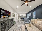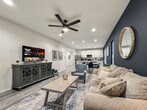 Your search ends here—this is the ideal spot for your stay in Dallas. Impeccably clean and roomy, this stylish 3-bedroom, 2-bathroom apartment offers plush King and Queen beds for a restful sleep. Enjoy the game room for entertainment and make unforgettable memories, day or night. The open-concept living and dining space is tastefully furnished with contemporary decor and ample lighting. Expansive glass windows flood the space with natural light, complemented by warm wooden floors for a cozy ambiance. Each bedroom provides a peaceful escape with charming nighttime views. The fully equipped kitchen ensures effortless meal preparation with modern appliances and all necessary cookware. Experience the best of Dallas from this inviting apartment. Conveniently located, it offers easy access to local attractions and amenities, making it perfect for group getaways with family or friends. Your health, safety, and comfort are our top priorities, with strict cleaning protocols followed after every stay. Guest verification is required before your stay, which may involve submitting a government-issued photo ID and completing verification through our portal. All guests must sign a rental agreement outlining the terms of their stay. Hallway surveillance cameras are in place, and a Minut device is installed in the unit to monitor noise levels. [SI]