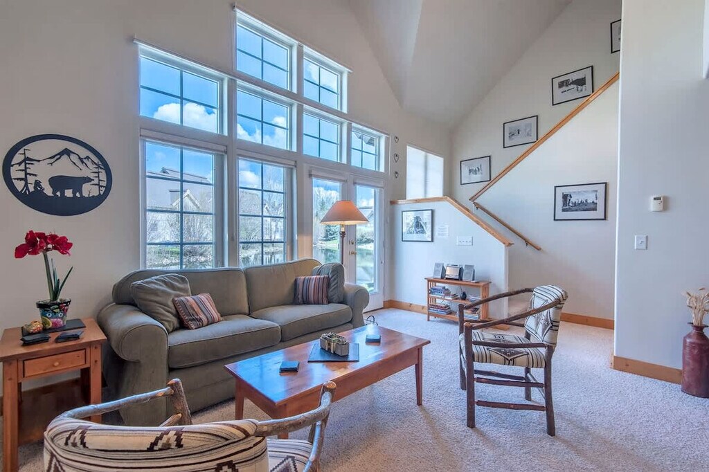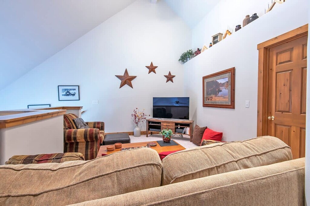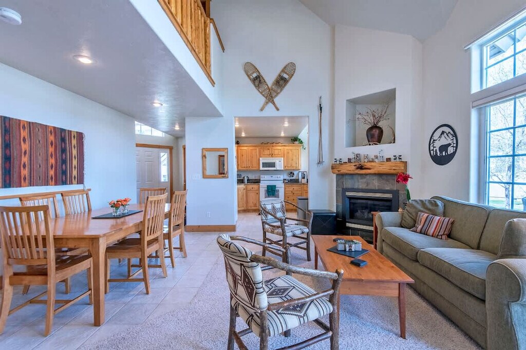 Welcome to this charming two-story townhouse in Driggs, Idaho, an impeccable home base for your adventure-filled vacation. Nestled as the ultimate launching point, this end unit offers easy access to the majestic Yellowstone and Grand Teton National Parks and a plethora of activities in the vibrant Teton Valley and nearby Jackson Hole, Wyoming. Experience comfort and style in the spacious living areas featuring an open-plan living room with large windows showcasing the tranquil community pond, home to local waterfowl. Entertainment is ready with TVs in both the loft and master bedroom, plus high-speed wireless internet for guaranteed connectivity. Enjoy the ease of in-unit laundry, a propane BBQ grill, and a dedicated garage space for your convenience. French doors open to a west-facing deck, providing stunning views and a peaceful setting to relax and reflect. The layout includes a queen bed in both the master and second bedrooms, twin beds in the third bedroom, and a queen sleeper sofa in the loft for additional guests. The gourmet kitchen is fully equipped with modern appliances including a coffee maker, microwave, and dishwasher, perfect for cooking meals together. The living room is elegantly decorated with a cozy propane fireplace, ideal for gathering around and sharing stories of the day’s exploits. A maximum of two licensed vehicles is allowed in the driveway and garages. Only automobiles, SUVs, pickup trucks, and family vans are to be parked by the units. Trailers, large RVs, and boats must be parked across Aspen Meadows Road by the dumpster. This townhouse is a prime location for exploration with short drives to Yellowstone (90 miles to the West Entrance) and Grand Teton (39 miles), offering breathtaking landscapes and wildlife. Nearby Grand Targhee (11 miles) and Jackson Hole Mountain Resort (35 miles) provide world-class skiing and snowboarding. Driggs is just minutes away, along with other quaint towns like Victor and Jackson, full of dining and shopping options. Distances to key locations include Yellowstone National Park's West Entrance at 1 hour 35 minutes, South Entrance at 2 hours 3 minutes, Grand Teton National Park at 56 minutes, Grand Targhee Resort at 21 minutes, Jackson Hole Mountain Resort at 48 minutes, Idaho Falls Airport (IDA) at 1 hour 16 minutes, and Jackson, WY Airport (JAC) at 1 hour 2 minutes. In Teton Valley, fondly known as the quiet side of the Tetons, this townhouse is not just a place to stay—it’s a place to live, laugh, and create unforgettable memories. The number of people at the property should not exceed the maximum sleeping capacity. Quiet hours are from 8 pm to 8 am to be respectful to neighbors. No events are allowed, including parties, large gatherings, and weddings. Smoking or vaping in the home or on the decks is prohibited, and an additional charge will be applied if any butts are found on the property. Exterior lights should be turned off at night to preserve the beauty of the dark skies. Drive slowly in the neighborhood in respect of children, pets, and wildlife. Recreating in the pond is prohibited. No riding snow machines, dirt bikes, or ATVs in the subdivision or at the rental property. Do not burn candles or incense in the home. No fireworks are allowed on the premises. Keep all main entry doors locked when not occupied. Fines will apply for violations including but not limited to leaving garbage in the house or litter on grounds, failure to disclose or clean up after pets, smoking in the house or garage, failure to follow house rules and respect posted signs, failure to follow check-out procedure, mistreatment of hot tub, or violations of local laws. A minimum $500 fine applies for smoking, vaping, or marijuana use in the house or garage, violation of house rules, posted signs, laws, or failure to vacate at check-out time. High-speed wireless internet is available, ensuring a remote work-friendly environment.