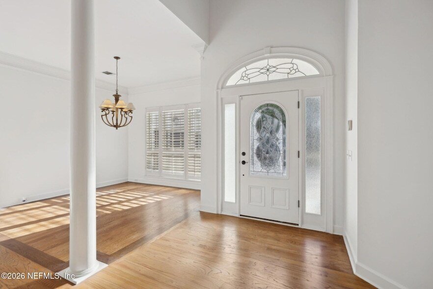 Located within sought-after Marsh Landing Country Club Community this stately home features a grand foyer w/ impressive staircase welcoming you into a residence defined by lovely architecture & elegant details. The enormous primary suite is conveniently situated on the 1st level, offering a private retreat. The expansive layout includes a large kitchen, multiple living areas designed for comfort & entertaining, wood flooring in formal rooms, tile in family room & new carpet throughout the upstairs. Step outside to a private screened lanai featuring a sparkling heated salt water pool & spa, ideal for year-round enjoyment. A spacious three-car garage provides ample storage & parking. This exceptional home offers a luxurious lifestyle in a prestigious community, pool & lawn care provided by owner & no additional fees charged to tenant other than utilities.