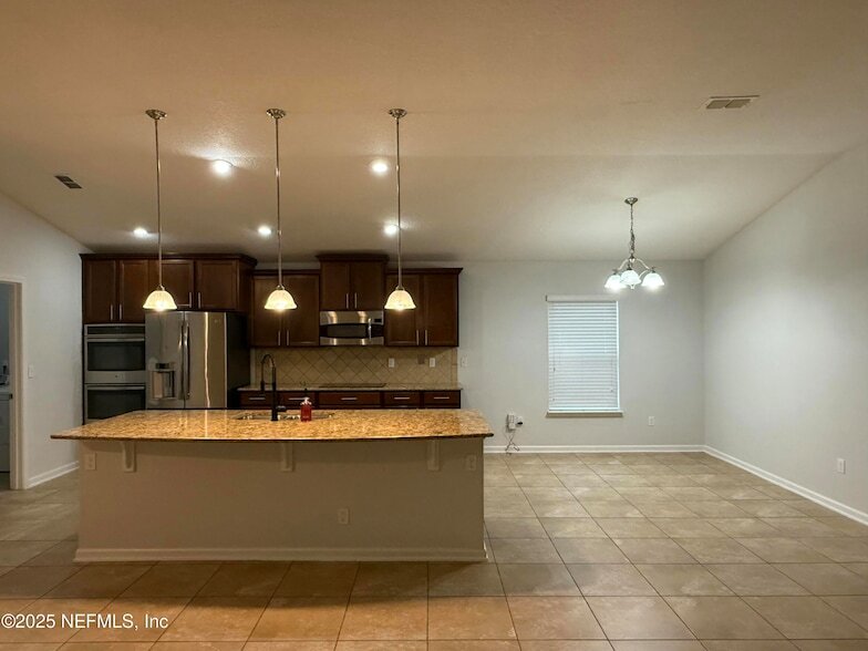 Welcome to your dream rental home, a spacious 5-bedroom, 4-bathroom retreat nestled in a tranquil cul-de-sac and backed by serene woods. This stunning house boasts a gourmet kitchen equipped with a double wall oven, 42'' cabinets, a stylish backsplash, and an oversized food prep island that overlooks an expansive family room, perfect for entertaining. The primary suite features elegant trey ceilings and dual vanities for a touch of luxury. Enjoy the outdoors on your covered patio, surrounded by a beautiful preserve and mature palm trees. With a 3-car garage, full irrigation system, and ample space for your family, this house ensures convenience and comfort. Located in a fabulous community renowned for its A-rated schools, residents here have access to exceptional amenities, including a resort-style pool, lap pool, basketball courts, and a state-of-the-art free-standing gym. Don't miss the opportunity to call this magnificent property home!