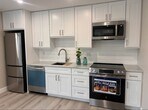 Year-Round Rental for this trendy condo! This chic 1-bed, 1-bath unit is part of a sleek 8-unit building fully transformed from commercial to coastal-modern living. Enjoy quartzite countertops, nickel gap accent wall, tall kitchen cabinetry with pantry, and a range that triples as oven, stove, and air fryer. In-unit washer/dryer combo, walk-in tiled shower, and mini splits for efficient heating and cooling make life easy. Basement storage plus a common area ready to be your personal gym. Rent covers landscaping, trash removal, snow, water. First, last and security due at lease signing. 12 month lease required. Tenant responsible for electric and cable. Close to downtown, beaches, shopping, dining, golf, and the ferry to the islands, this stylish unit is ideal for anyone looking to enjoy low maintenance living with modern amenities in the heart of Cape Cod.
