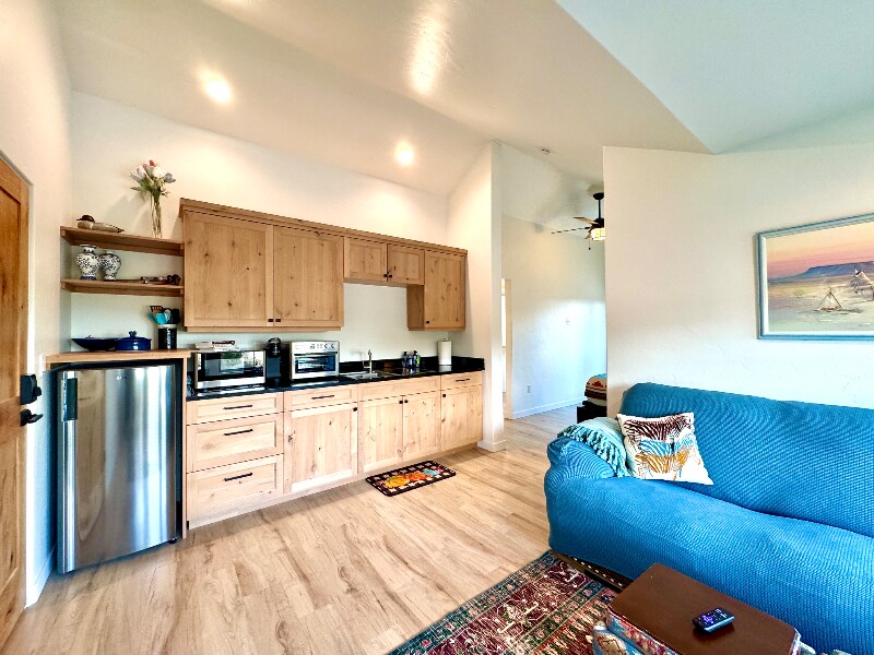 Property Id: 1830492 Private large bedroom suite w/ ensuite bathroom and walk-in closet for rent in brand new build in Bigfork. The room is fully furnished with queen bed (upgrading to king), dresser, couch, and desk. There is a private deck that leads to a fantastic view of the river and mountains. A fully equipped kitchenette with lots of storage, sink/dishwasher combo, toaster oven, and mid-size fridge w/ freezer. Room is up a full flight of stairs. Home is shared but owner has private rooms downstairs. Air Conditioning, High speed internet, 50" smart TV in sitting area and 32” TV in bedroom area w/ Hulu Live, Netflix, Paramount, Peacock, and HBO(Max), Shared laundry room upstairs just outside the room, Private deck w/ deck furniture, Bluetooth speaker. A small pet is negotiable, but pet rent and deposit would apply.
