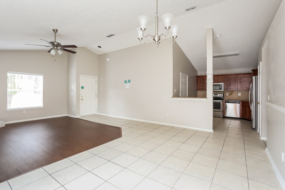 Please note, our homes are available on a first-come, first-serve basis and are not reserved until the holding fee agreement is signed and the holding fee is paid by the primary applicant. Coming soon! This home is currently being enjoyed by another resident but will be available soon. Please respect their privacy and do not disturb. You can complete the application process and reserve this home for a $500 non-refundable holding fee until it's ready for move-in. This fee must be paid within 24 hours of being pre-qualified and will be applied to your first month’s rent if you enter into a lease for this home. 3 bedroom, 2 bathroom home in Jacksonville, FL features a single car garage, a patio in the backyard, a corner fireplace, and tall ceilings. The kitchen boasts upgraded cabinetry and a backsplash. The bedrooms are generously sized.