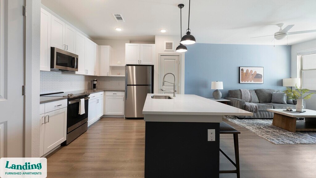 Landing offers flexible lease terms from weeks to months. Please always visit our website or contact us for the latest pricing & availability. Stay longer, save more: 6-Month Minimum base rent: starts at $2349/mo 12-Month Minimum base rent: starts at $2017/mo Landing offers flexible leases across a network of over 35,000 fully-furnished apartments throughout 375+ cities so you can rent on your terms, practically anywhere, and avoid the hassle of paying deposits or application fees. Visit to learn about all the benefits of a Landing membership, see our competitive up-to-date pricing, explore available apartments, take virtual tours, and make reservations online without jumping through traditional rental hoops. Landing's apartments at Birdie on Woodland Greens are designed for comfortable, easy living, with the ability to stay as long as you like. Experience living with Landing Every apartment is outfitted with all the modern essentials including: custom-designed furnishings, a fully-equipped kitchen with deluxe stainless steel appliances, a gourmet coffee maker, premium linens, Smart TVs, and incredibly fast, reliable internet for working from home. When you live with Landing, you'll enjoy a hassle-free experience with the added benefit of 24/7 access to our dedicated member experience team. Some of the nitty-gritty: a background check and proof of income are required; we're completely smoke-free; bundled utility packages and pricing vary based on length of stay; pet-friendly options available; listed price reflects a 12-month minimum stay.
