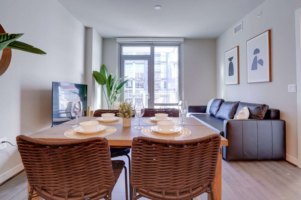 Welcome to your stylish retreat in the heart of Clarendon! Feel at home in this modern apartment that combines comfort and convenience, making it the ideal base for experiencing Arlington’s lively streets, trendy shops, and vibrant dining scene. This bright and modern apartment is designed for a comfortable and relaxing stay. The living room offers a comfortable space with a sofa bed and TV. Both bedrooms have cozy queen-size beds with soft linens, and one bedroom also includes a TV. The kitchen is fully equipped with modern appliances and everything you need to cook and enjoy your meals. A washer and dryer are included for your convenience. A late check-out is available with 24 hours notice for an additional cost. This centrally located apartment is just a 5-minute walk to Clarendon Metro Station, with quick connections to Washington, D.C. You are steps from The Market Common Clarendon, featuring boutique stores, grocery options, and specialty shops. Enjoy top restaurants such as Ambar, Liberty Tavern, and Lyon Hall, plus lively bars like Wilson Hardware and Clarendon Ballroom. Explore local art galleries, live music venues, and Clarendon Central Park events. Nearby Quincy Park and Fort Bennett Park offer green spaces, walking trails, and playgrounds. Explore Clarendon’s vibrant streets, cafes, and nightlife on foot or by bike. Grocery stores, coffee shops, fitness centers, and pharmacies are all within easy reach. Quiet hours are between 10:00 p.m. and 8:00 a.m. Smoking is not allowed indoors, as it may result in a $300 fine. Hosting unauthorized gatherings on the property will result in a $300 fine. For the safety and security of all residents, the building requires a brief guest screening prior to check-in, which must be completed before arrival. Check-in is scheduled for 4:00 p.m., and check-out is at 11:00 a.m. Package deliveries to the property address are not allowed. Washcloths are not provided. In case of any lost linens or apartment keys, an additional cost will be charged to replace them. A fine of $250 will be charged for lost fob/access cards, and a fee of $200–$300 will be charged for replacement of lost parking tags, per building policy. The pool is not available for this season. The building operates a centralized HVAC system in accordance with municipal regulations. Heating runs from October 13 to May 1, while air conditioning is available from May 15 to October 1. During seasonal transitions, HVAC adjustments are managed by the building association based on outdoor temperatures. All members staying must register by providing a photo ID on the same day as check-in. [SI]