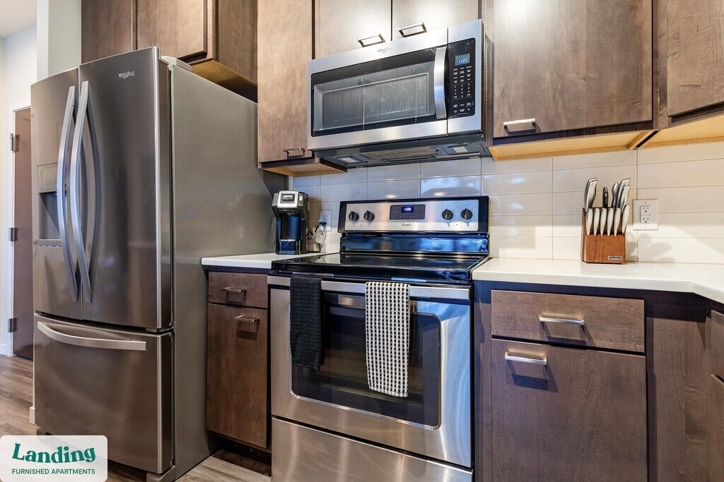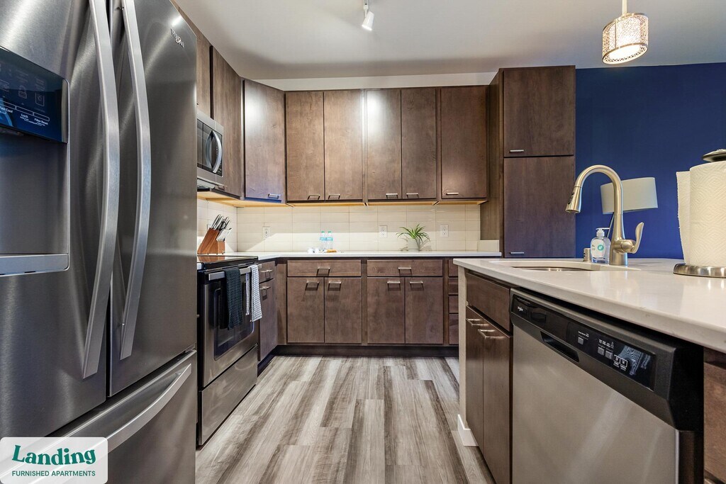 Landing offers flexible lease terms from weeks to months. Please always visit our website or contact us for the latest pricing & availability. Stay longer, save more: 6-Month Minimum base rent: starts at $2080/mo 12-Month Minimum base rent: starts at $1850/mo Landing offers flexible leases across a network of over 35,000 fully-furnished apartments throughout 375+ cities so you can rent on your terms, practically anywhere, and avoid the hassle of paying deposits or application fees. Visit to learn about all the benefits of a Landing membership, see our competitive up-to-date pricing, explore available apartments, take virtual tours, and make reservations online without jumping through traditional rental hoops. Landing's apartments at Synergy at the Mayfair Collection are designed for comfortable, easy living, with the ability to stay as long as you like. Experience living with Landing Every apartment is outfitted with all the modern essentials including: custom-designed furnishings, a fully-equipped kitchen with deluxe stainless steel appliances, a gourmet coffee maker, premium linens, Smart TVs, and incredibly fast, reliable internet for working from home. When you live with Landing, you'll enjoy a hassle-free experience with the added benefit of 24/7 access to our dedicated member experience team. Some of the nitty-gritty: a background check and proof of income are required; we're completely smoke-free; bundled utility packages and pricing vary based on length of stay; pet-friendly options available; listed price reflects a 12-month minimum stay.