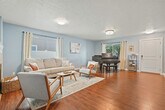 Feel at home in this spacious 5-bedroom, 2.5-bathroom home in Nampa, accommodating up to 20 guests. This inviting retreat is nestled in a quiet residential neighborhood, just 2.6 miles from Lake Lowell. The first floor features a large living area, a generous dining area with a see-through fireplace and two recliners, and an open kitchen. You'll also find a laundry room, a half bath, and a guest suite with a queen bed on this floor. Upstairs, the family room loft awaits with a comfortable sectional and Smart TV, adjacent to the expansive bunk room with 9 beds and another Smart TV. The remaining three rooms offer ample space, featuring a king bed, a queen bed, and a primary ensuite with a king bed. The primary ensuite boasts a large closet, complete with a pack and play and a rocking recliner. Outside, you can relax on the covered patio or enjoy picking fruit from the two fruit trees, if they happen to be in season. Enjoy the community pool and basketball court nearby. Well-behaved pets are allowed with prior approval and a fee of $50 per pet per stay. The home is close to Copper River Basin Park in Nampa, Idaho, off of roads Roosevelt Ave and S. Middleton Rd. It's conveniently located less than 10 minutes from the freeway, offering both tranquility and easy access to local attractions. Late check-outs beyond 30 minutes without prior approval will incur a $300 fee. Parties, events, and unauthorized gatherings are strictly prohibited, and violation may result in immediate termination of the reservation without a refund and an additional cleaning or disturbance fee. Smoking (including vaping and cannabis) inside the home will result in a $250 cleaning fee. Only guests included in the reservation are permitted on the property unless approved in advance, and additional unregistered guests may incur a $100 per person per night fee. Quiet hours are from 10:00 PM to 8:00 AM, and tampering with security devices is strictly prohibited and will result in cancellation without refund. Two of the bedrooms have dedicated workspaces. [SI]