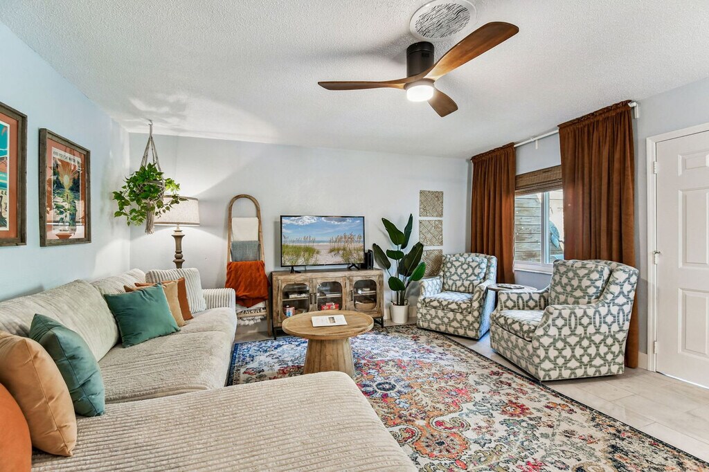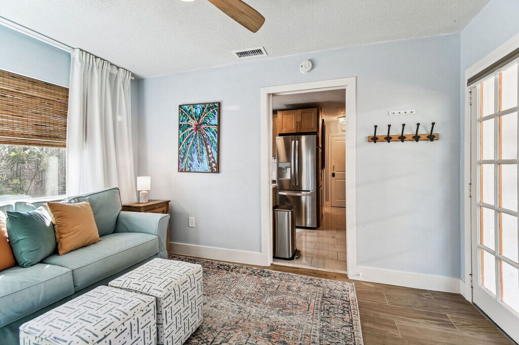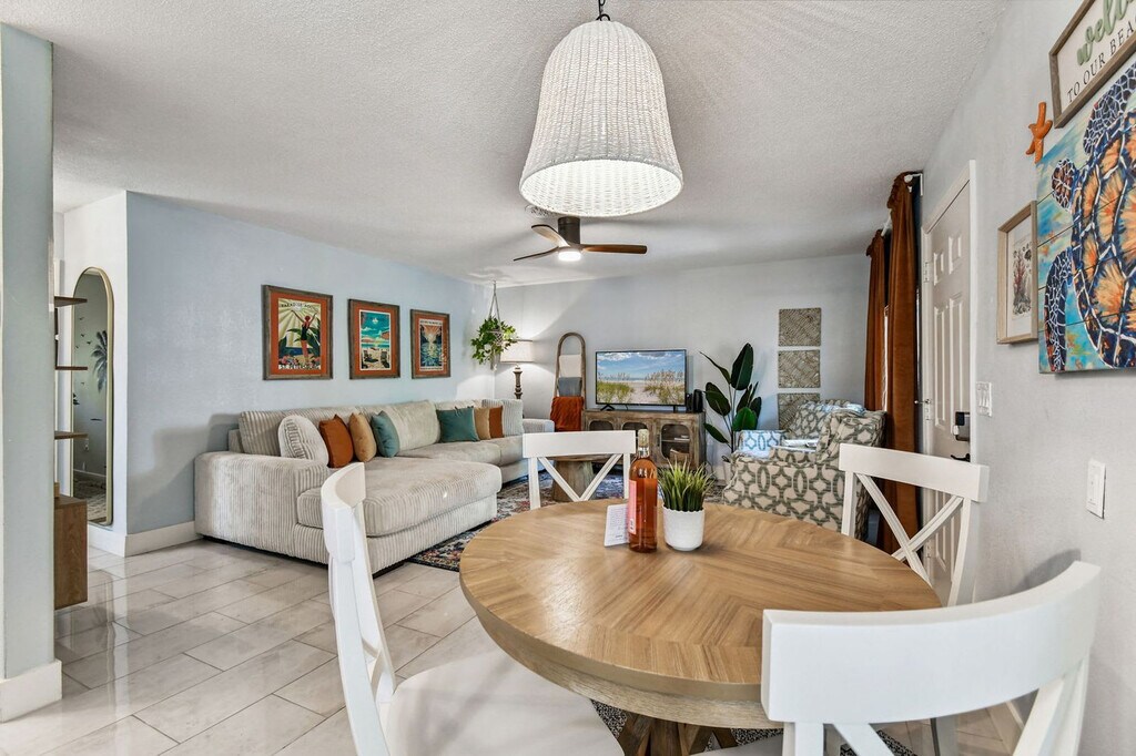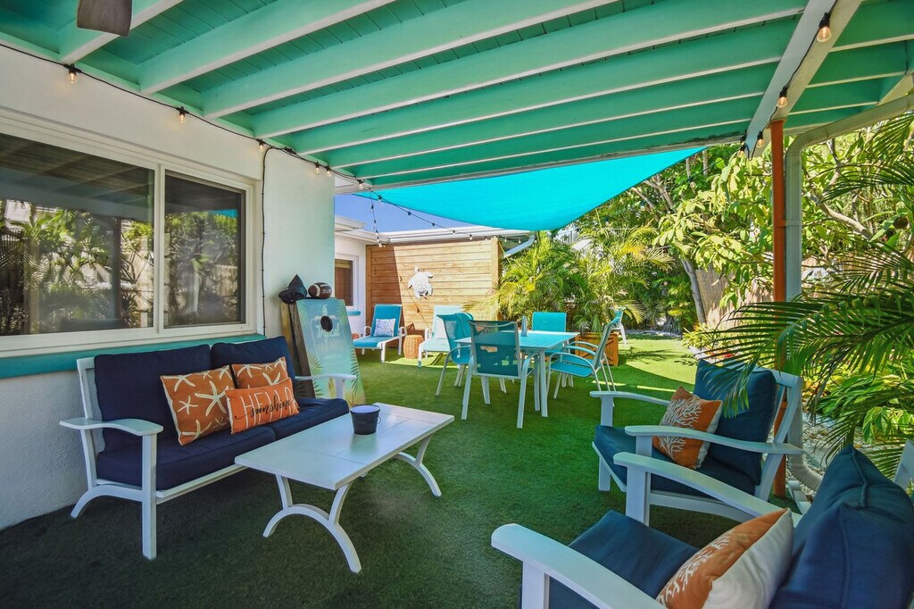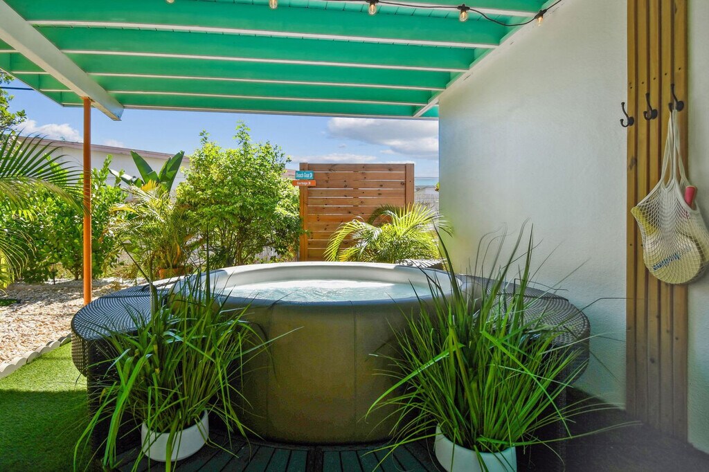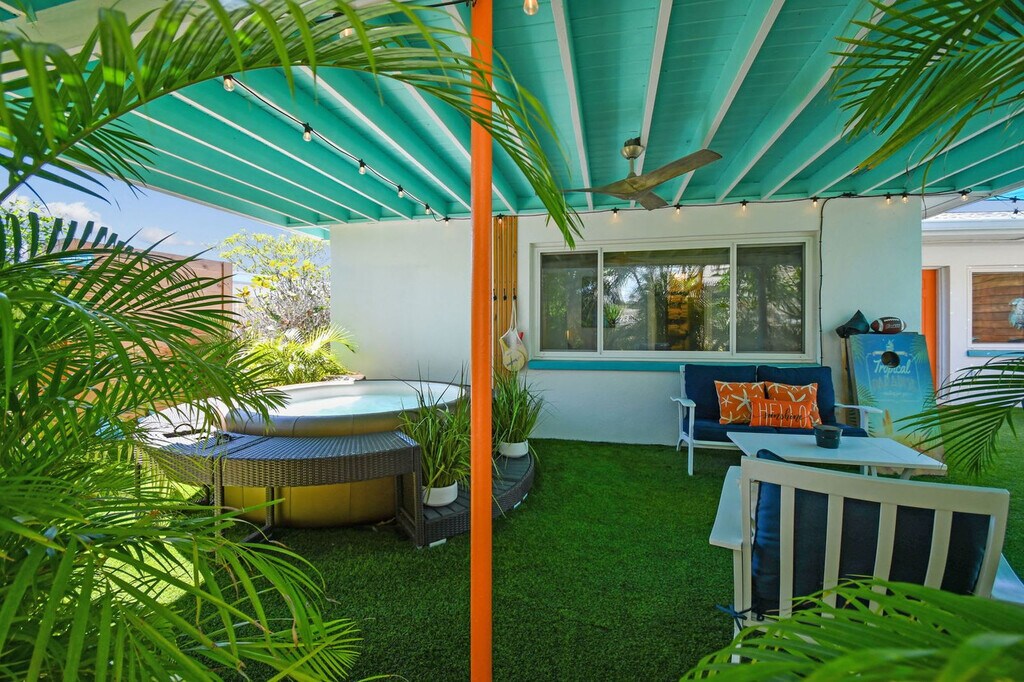 Welcome to Turtle Cove, a tropical oasis near Treasure Island Beach. Feel at home in this 3-bedroom, 2-bath home that accommodates up to 6 guests. This newly refurbished, family-friendly home features a fully equipped kitchen with fine kitchenware, a bright and airy living room with a smart TV and board games, and a private backyard oasis with a relaxing hot tub, BBQ grill, corn hole, lush lawn, and cozy seating spaces. Beach gear is provided for your convenience, including chairs, umbrellas, sand toys, a wagon, and a baby sunshade. Enjoy indoor and outdoor dining options with a table for 6 surrounded by tropical landscaping. Located in a very quiet neighborhood within walking distance to beaches, shopping, and restaurants, this home is also a short drive from John's Pass (5 mins), Pass-a-grille (10 mins), Madeira Beach (3 mins), Indian Rocks Beach (5 mins), St Pete Pier (20 mins), Tropicana Field (20 mins), Clearwater Beach (25 mins), Tampa International Airport (40 mins), St Pete-Clearwater International Airport (30 mins), Busch Gardens (45 mins), MacDill Air Force Base (45 mins), and South Tampa (45 mins). Nearby attractions include Treasure Island Community Center, Sunset Beach, Gulf Boulevard, Treasure Island Beach, and John's Pass Village & Boardwalk. Quiet hours are between 10 PM and 8 AM. Please do not wear shoes in the house and keep all wet clothes off of the inside furniture. Registration Number: DWE6217458 [SI]